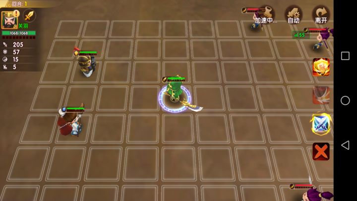 运筹三国已经上线有几天了,相信大部分玩家都尝试过虎牢关的副本挑战。但是第二关和第三关的短腿武安国以及公孙瓒应该卡住不少玩家。今天就跟大家分析一个套路,成功率33.33%,就是刘禅+张昭这个套路。第一回合:起手武安国,大头朝下走。刘禅在前防守,张昭在侧面防守这是第一回合结束后,第二回合开始的状态。第二回合:武安国大头朝下,刘禅继续后退一格守在前面防守攒气。张昭在侧防守/攻击.(应该