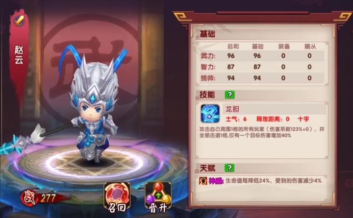 赵云,字子龙,常山真定人,故有常山赵子龙的美称。身长八尺,姿颜雄伟,三国时期蜀汉名将。赵云一生跟随刘备超过20年,先后参加了博望坡之战、长坂坡之战、江南平定战,独自指挥过入川之战、汉水之战等战役,赵云参加过的战役基本获胜,故而又称其常胜将军。历史上胡赵云见识高远、忠勇兼备、品行无暇、外形俊朗,是一个完美英雄。虽不得其主刘备重用,但在三国演艺中为其鸣冤,加封五虎上将。我们根据子龙在三国演义中的形象