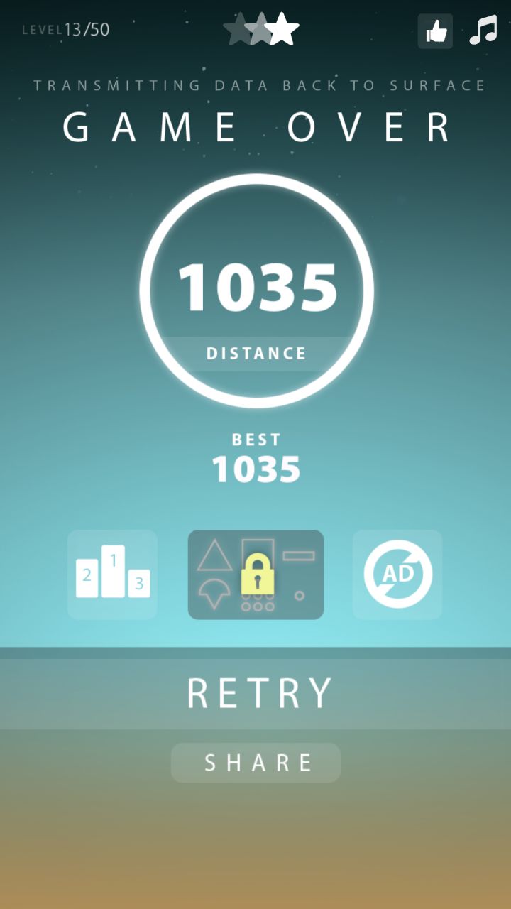 “容易学习,难于操作”是 AppStore 给《Force Escape》的一句话介绍,游戏的主界面似乎暗示了游戏的背景,一片废墟。此时世界应该已经只剩下一片虚无,那么我们保护在身后的,就把它当做“希望”吧。在《Force Escape》中,我们将作为“希望”的守护者,把它带离这已经坍塌的世界,“希望”勇往直前,我们则在它身前它披荆斩棘。逃生力场,逃离的就是这带有重力的地球。游戏有50种障碍挑