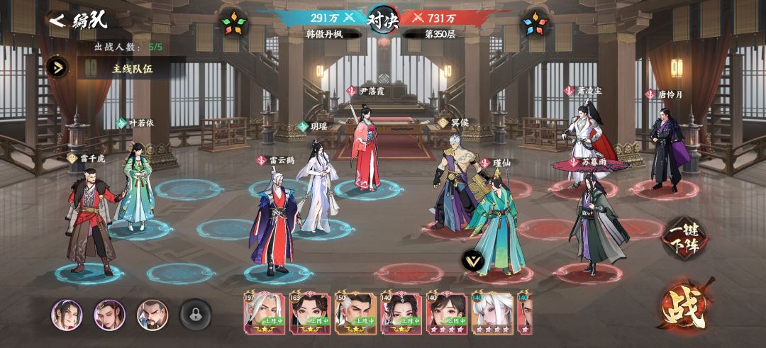 爬塔篇~完全不想上班(bushi) 因为少歌产能的严重不足,我一开始就把%90的心思都用在了爬塔上,算是有一点点想法。 第一套阵容雷云鹤国家队,雷云鹤 玥瑶 华锦(萧月离)沐春风 叶若依,先说这个阵容的优点,雷云鹤大招连劈四下对面最高攻击的机制在pve方面绝对是不会退伍的,而且还是高爆角色,玥瑶开大牵链子防止对面单体爆发,华锦不屈防止越五倍爬塔时第一回合暴毙[表情_捂脸哭],叶若依最强的增伤辅