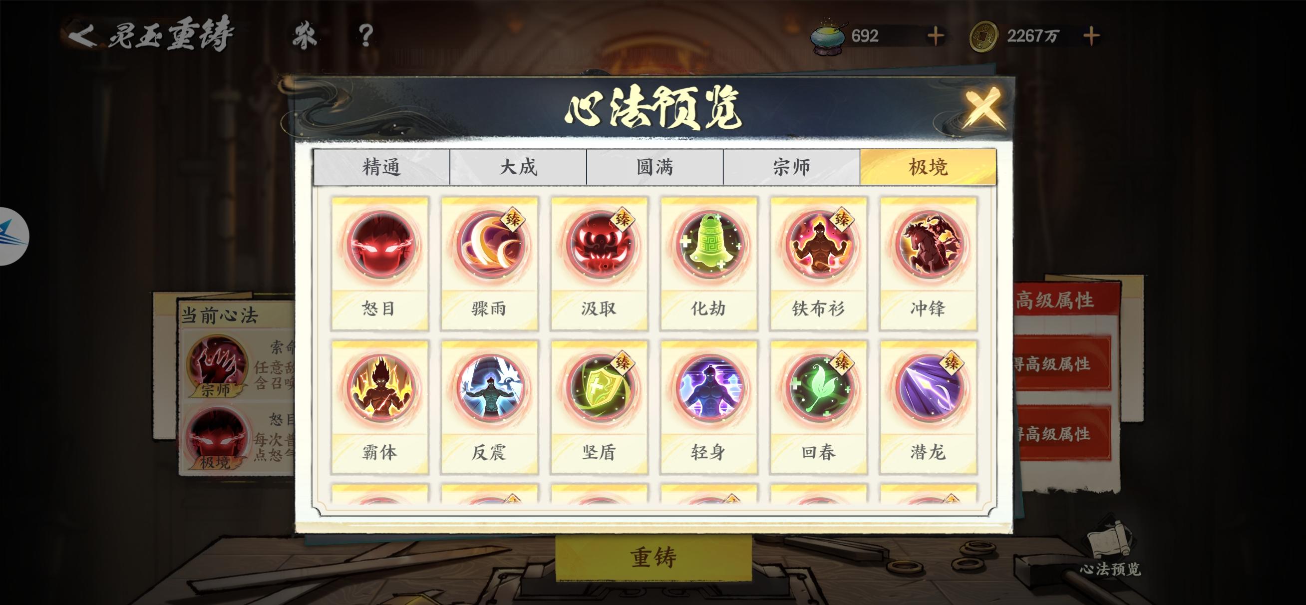 终焉建议:一!招募次数能不能从原先的10连抽增加到50或100连抽!三千多抽,我要点到什么时候啊!点的我暴躁症都犯了!二:隐士谱从原先的拜访10连增加到50~100!三:剑心冢从原先的锻造10次增加到50~100!四,剑心令+金币才能进行锻造,能不能只要剑心令锻造,金币保留,五:背包里多余的角色用来置换其它的角色!六:角色碎片用于分解,而分解得到的物品用来购买商城其它东西