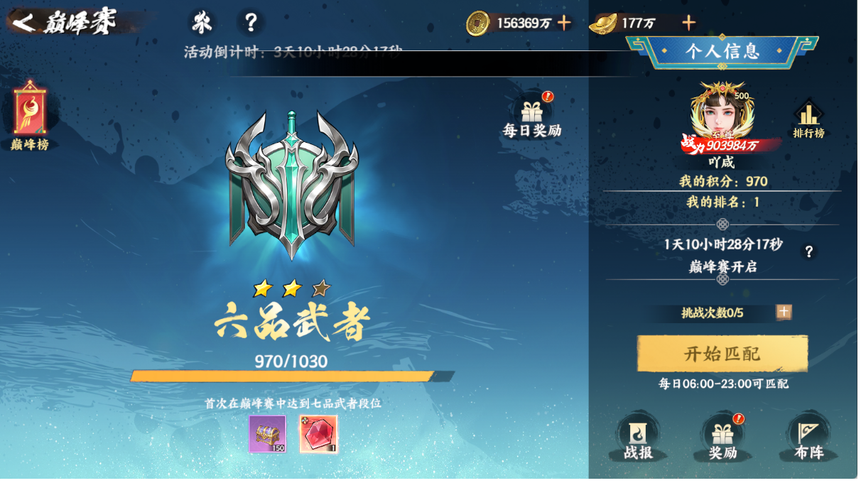 明天(2.2)少歌全部符合标准(开区时间≥30天)的服务器将开启第一届巅峰赛。本贴将以此来简单介绍下巅峰赛的内容,奖励,机制及部分推荐阵容。一、基本内容及赛程形式巅峰赛分为段位赛和巅峰赛两个赛程。①巅峰赛开启的第1天~第5天为——段位赛赛程。②巅峰赛开启的第6天~第7天为——巅峰赛赛程。*段位赛积分前64名且段位高于六品武者段位的玩家获得巅峰赛资格。*巅峰赛期间每天只有10次主动匹配次