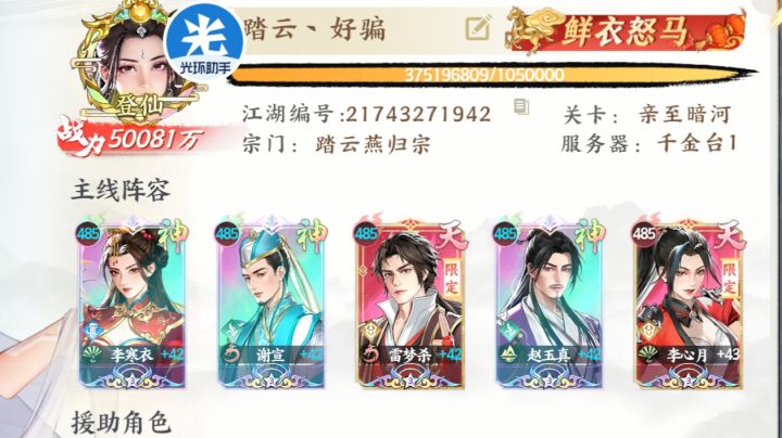 今天定的五点闹钟起来氪赵玉真,强度确实不低。由此衍生出了新一套的献祭流,这一套与上一套强度不相上下,只是氪度和心法有所区别,各位可以根据自己的情况来选择。(老一套拿捏四神雷梦杀,这一套拿捏五神无压力)献祭核心,能c能奶的道剑仙--赵玉真先说心法,由于被动的锁血,赵玉真完全不需要考虑生存问题(三回合真男人),所以心法只需全堆输出即可,核心心法电掣、拨云。电掣适配所有高频开大的侠客,赵