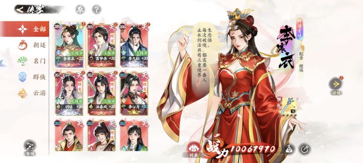 玩了一个月了,小氪了一些,李寒衣是首个突破一千万的角色,发个帖纪念下。本来想在贴吧发个记录贴,但是看了下没有人活跃了,因此来tap开个记录楼,不定期更新下玩的进度,也更有动力一些,欢迎大佬们来指导讨论。目前战力四千三百万,阵容如图,准备等之后神游活动抽个谢宣把沐春风换了,走龍词大佬推荐的弱点创伤队试试。谢宣估计一次活动拉不到12星,小氪一点能搞到十一星就满足了。