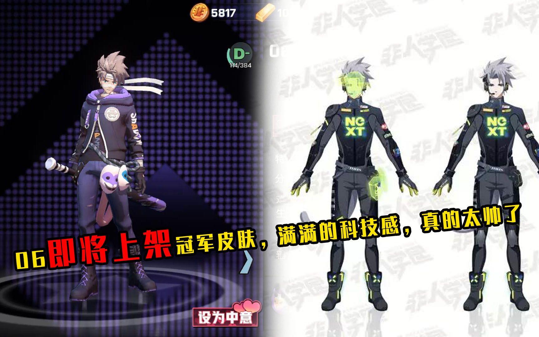 非人学园:第一款科技感的皮肤即将上线,06的冠军皮肤真的太帅了