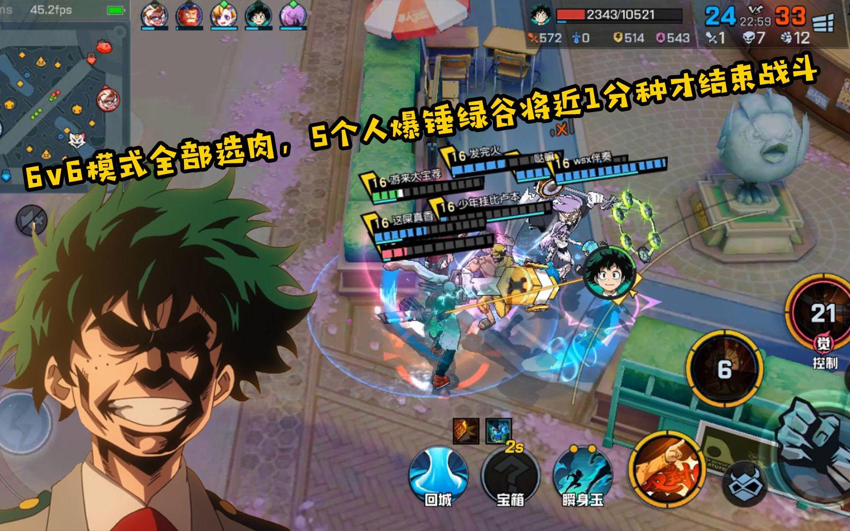6v6模式全部选肉,5个人爆锤绿谷将近1分钟才结束战斗