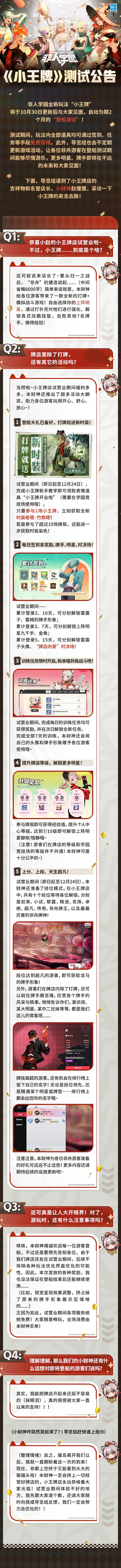 注意看,这款游戏叫《非人学园》,它灰头土脸、一穷二白。 如今,在无敌小王喵的带领下,它携带全新玩法《小王牌》满血重生! 这一次,它要拿回属于自己的一切! 学园神秘玩法全新升级!10月30日,《小王牌》开启测试! 欢迎来到非舟,一个充满奇迹的牌局世界。