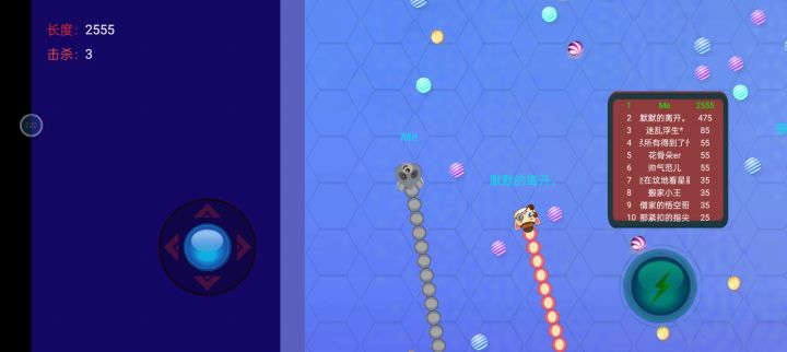 单机可以吃点,也可以让其它的贪吃蛇撞没后吃掉。