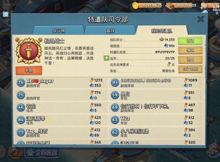 老区司令部,25人队招募队员 无等级要求,要打情报或者打任务就行。 欢迎萌新和大佬加入,急需长期稳定队友,待几天就跑路了不要。 特遣队标签:#PUVP9VYP
