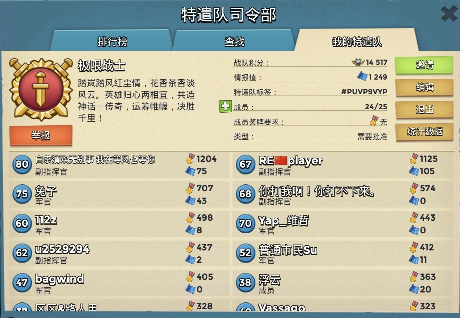 老区司令部,25人队招募队员无等级要求,要打情报或者打任务就行。欢迎萌新和大佬加入,队内有大佬讲解细节和打法。特遣队标签:#PUVP9VYP