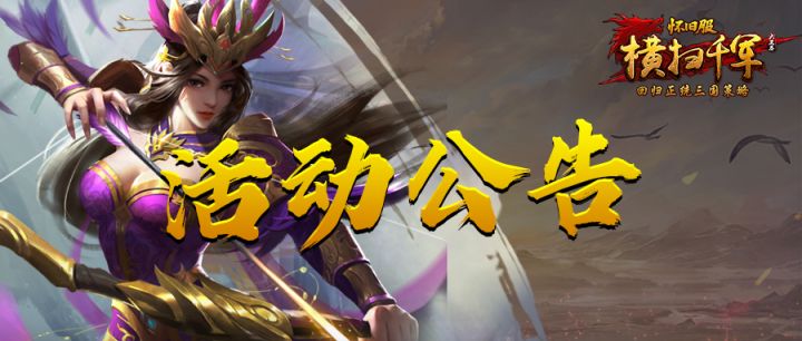 尊敬的主公:为了给各位提供更优质的游戏体验,《横扫千军怀旧服》将于3月26日 15:00~17:00进行例行停服更新。维护期间将暂时无法进入游戏,请大家提前做好准备。更新完成后,我们将通过邮件发放200元宝维护补偿。感谢您的支持与谅解!一、活动更新登录送礼活动时间:3/27 3:00~4/3 2:00活动内容:活动期间,每天登录即可领取资源聚宝盆活动时间:3/27 3:00~4/3