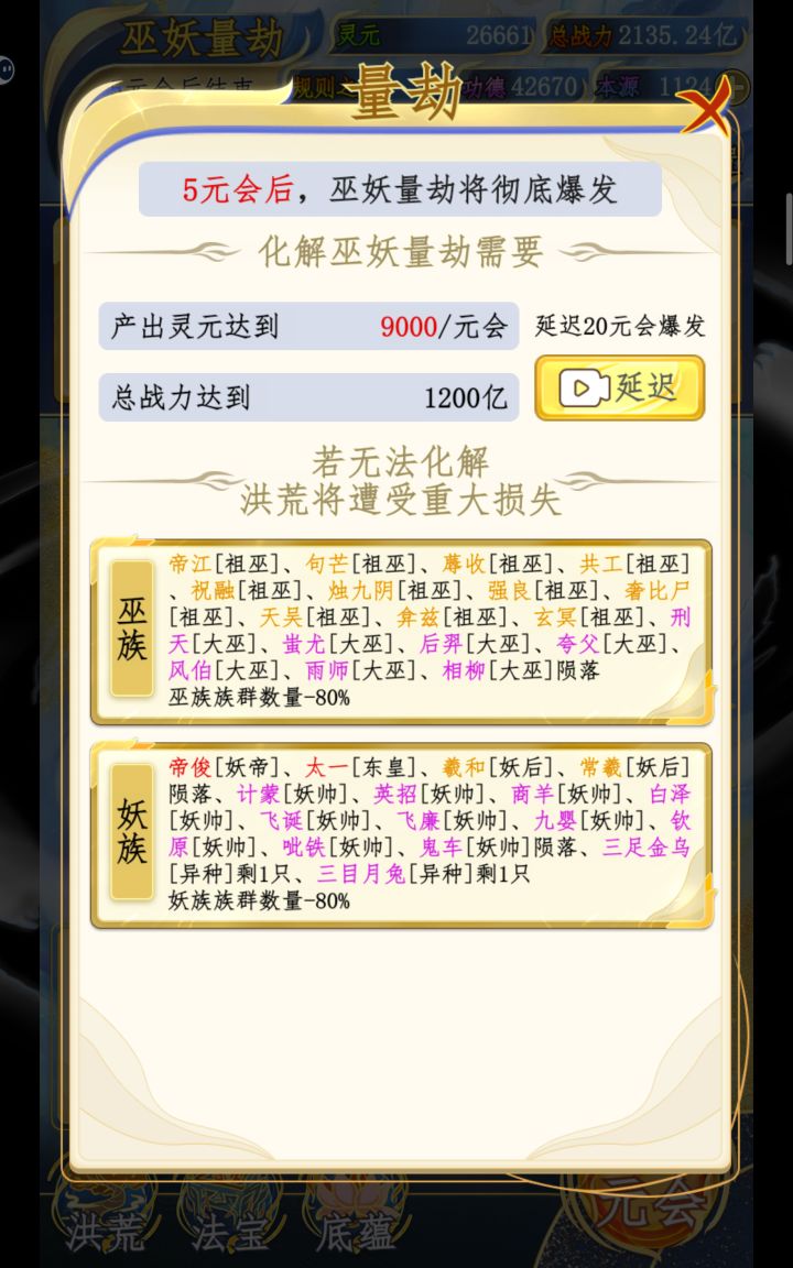 魔族:一代里是红名罗睺带四个黄名魔罗,这一代追加了八个紫名魔将。不出意外基本就是最强势力了,至少也是第二玄门:一代是红名鸿钧带两个童子,两个童子独立成天庭以后就只剩下鸿钧孤家寡人了,这一代增加了一群黄名的真君弟子,不过感觉一般都不会比四大魔罗强龙族:龙汉三族里数量最多的,但是也是最弱的,因为只有祖龙一个黄名。剩下烛龙应龙是紫名,四海龙王是蓝名,小白龙和五爪金龙是绿名凤族:龙汉三族里最少的,一