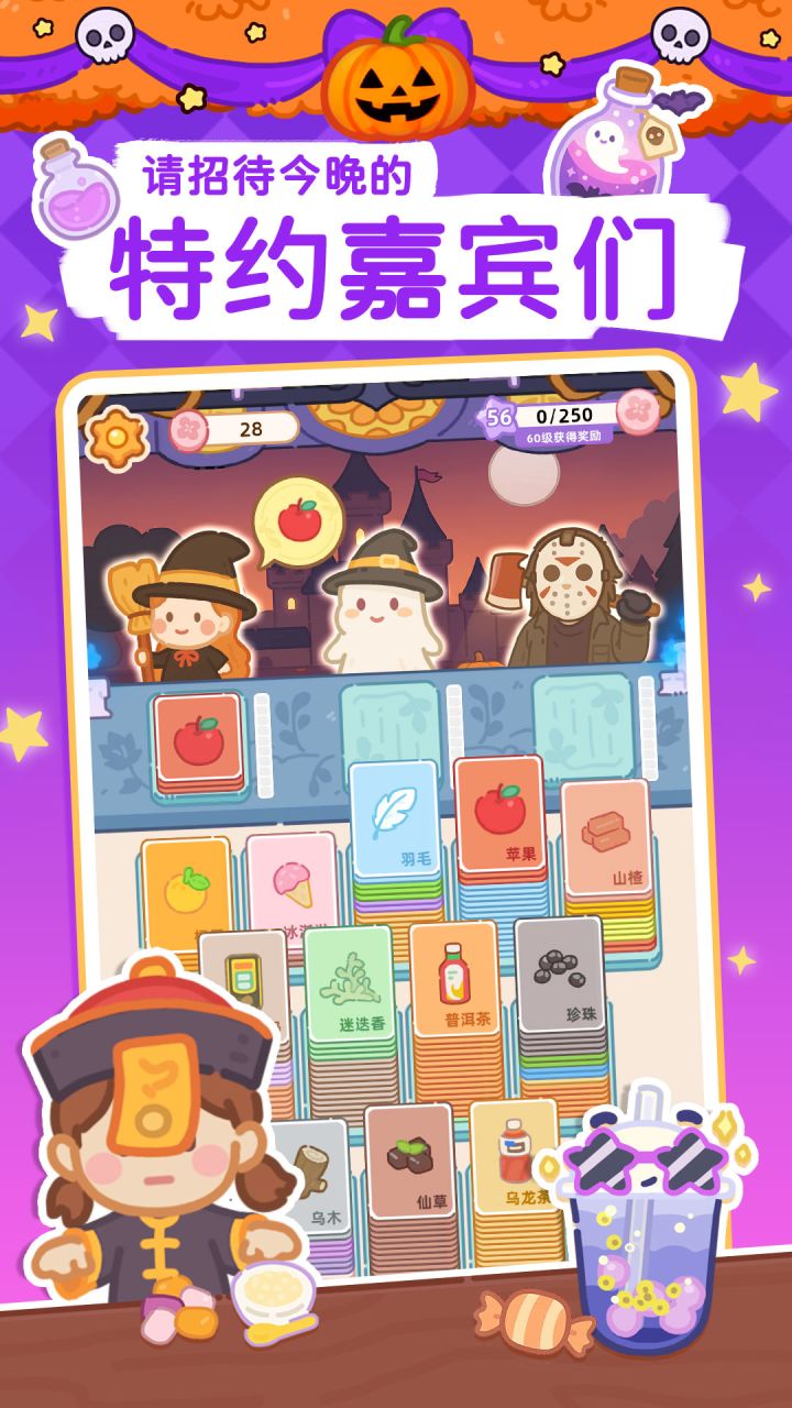 “店长,可以用一颗南瓜糖,换一杯甜甜的奶茶吗?”“诶?可以呀!不过,为什么想要换奶茶呢?”“因为...因为听说喝了你的奶茶,许下的万圣节愿望就能实现...”“那你的愿望是什么呢?”“希望...月光古堡的大家,这个万圣节都能开开心心的!”《梦幻奶茶屋》万圣节童话版本,温暖上线——欢迎光临新地图「月光古堡」!我们将与童话里可爱的小家伙们相遇。用全新的万圣节食谱,帮它们实现小小的心愿吧!更