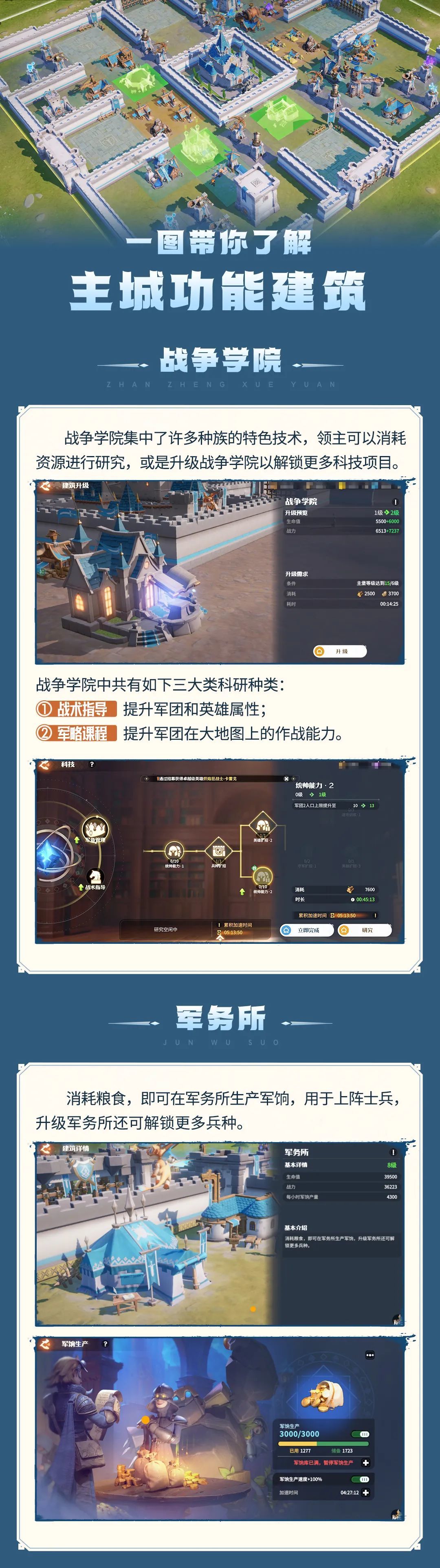 在《龙石战争》中,主城建筑包括:战争学院、军务所、龙巢、陷阱工坊、龙石工坊、练兵场等建筑。它们各自拥有不同的功能与玩法,接下来本幻龙将会详细介绍这些主城功能建筑,一起来看看吧~*本文为测试服内容和数据,不代表游戏最终数据*