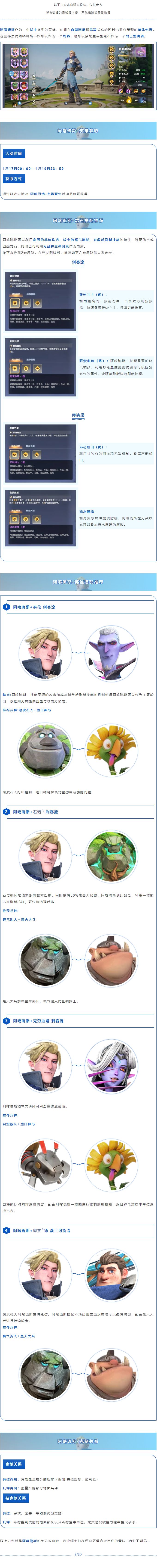 图文战报看着不过瘾? 幻龙宝宝特地给领主大人们带来了视频战报! 快来跟随幻龙宝宝一起来看看吧~ 好啦,那么接下来让我们步入正题~ 一起来看看阿喀琉斯的攻略吧! PART.01 / 英雄特性 阿喀琉斯作为一个战士类型的英雄,在拥有血量回复和无敌状态的同时也拥有高额的单体伤害。这些特点使阿喀琉斯不仅可以作为能抗能打的战士,还可以对后排造成威胁! PART.02 / 英雄获取 获取方式:限时卡池【光影双