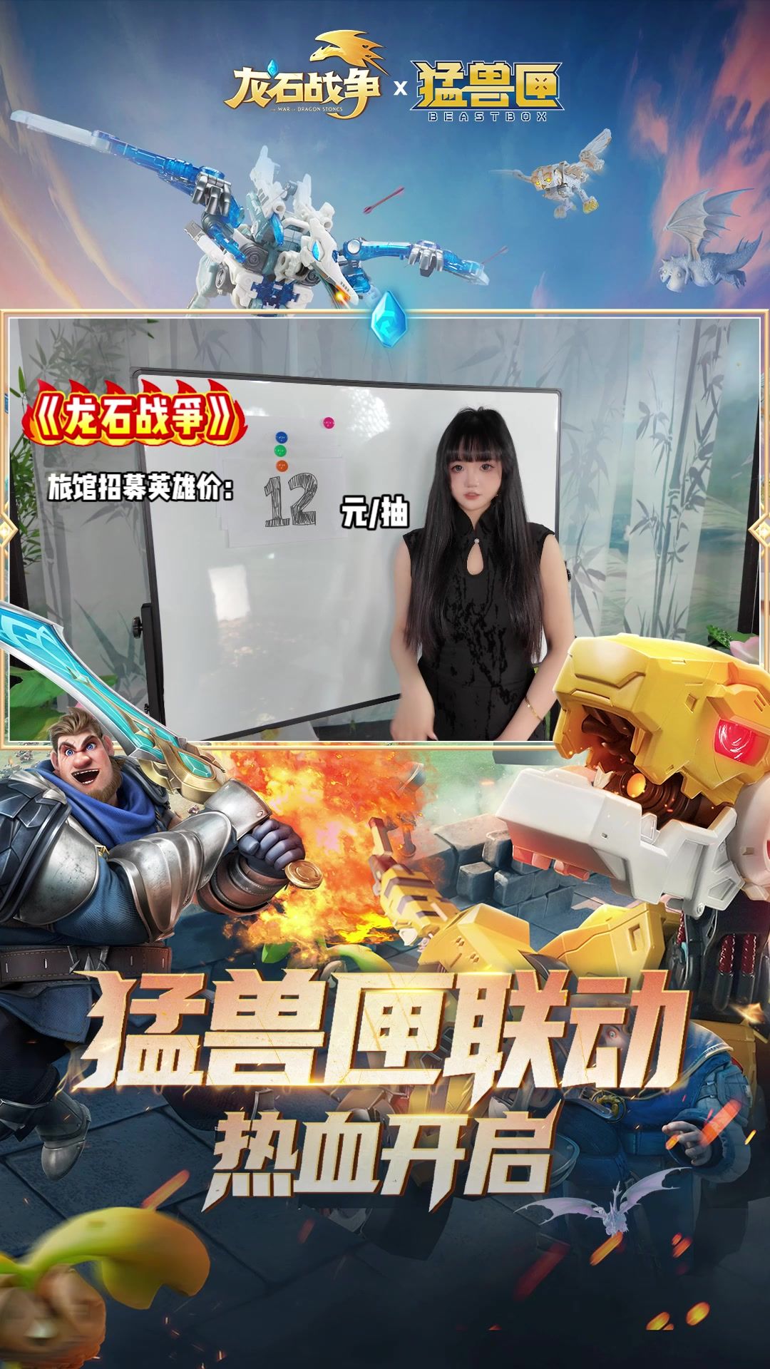 《龙石战争》× 猛兽匣抖音带货首播福利狂送!1 元秒杀、超值礼包、稀有周边掉落,还有美女 cos 精彩舞蹈,速来围观 #龙石战争 #猛兽匣 #新剧本 #机械龙魂龙石觉醒