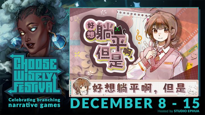 各位同学好!我们的大学校园模拟养成游戏《好想躺平啊,但是》正在参加由 Studio Ephua 主办的 「明智选择节」(Choose Wisely Festival)!这次的专题活动太适合我们参加了——在游戏里,你重来一次的大学校园生活是卷是躺,是恋爱还是搞钱,每一个岔路口都等你决定。٩(ˊᗜˋ*)و从主线的考研、保研、考公、就业 到支线的出国留学、送外卖、练功法、自由摸鱼……每条线路都配有不