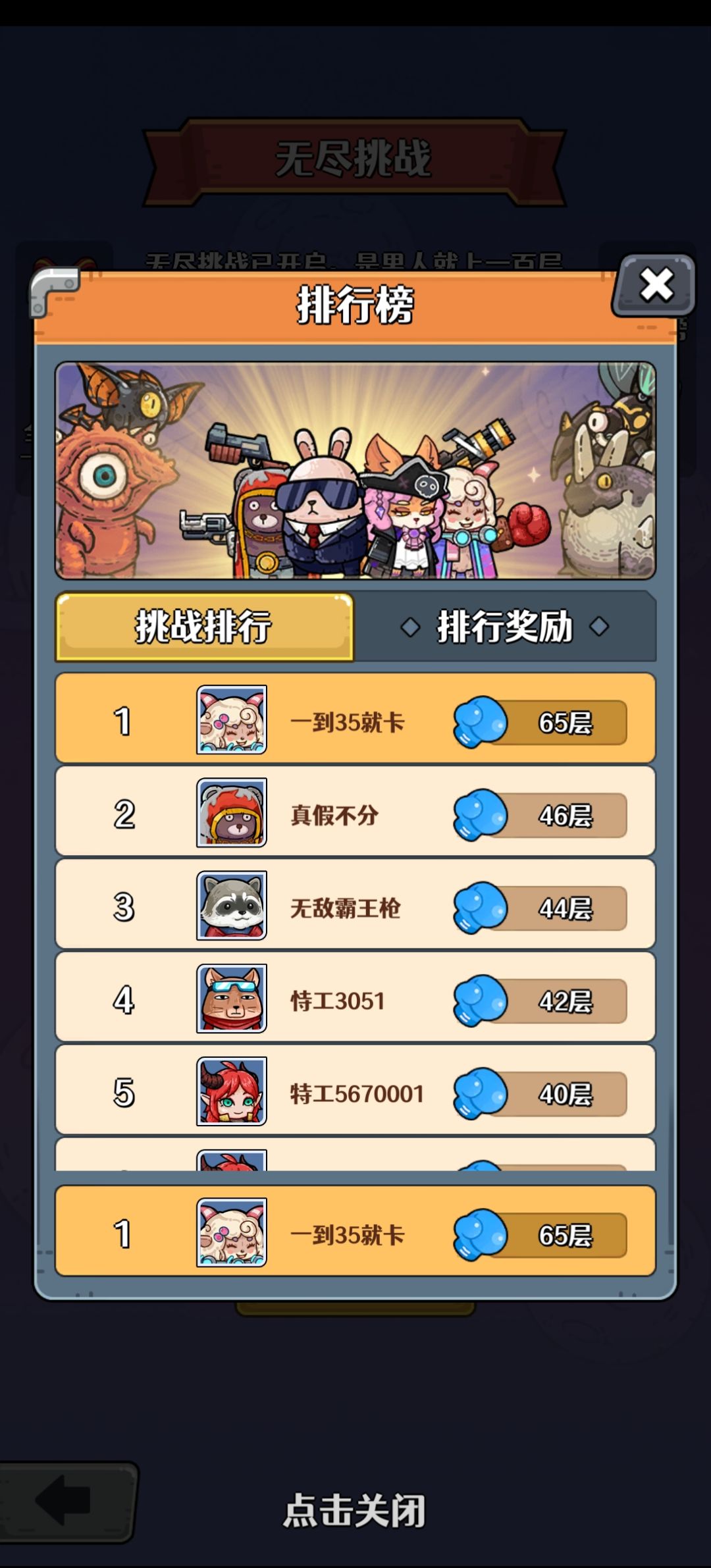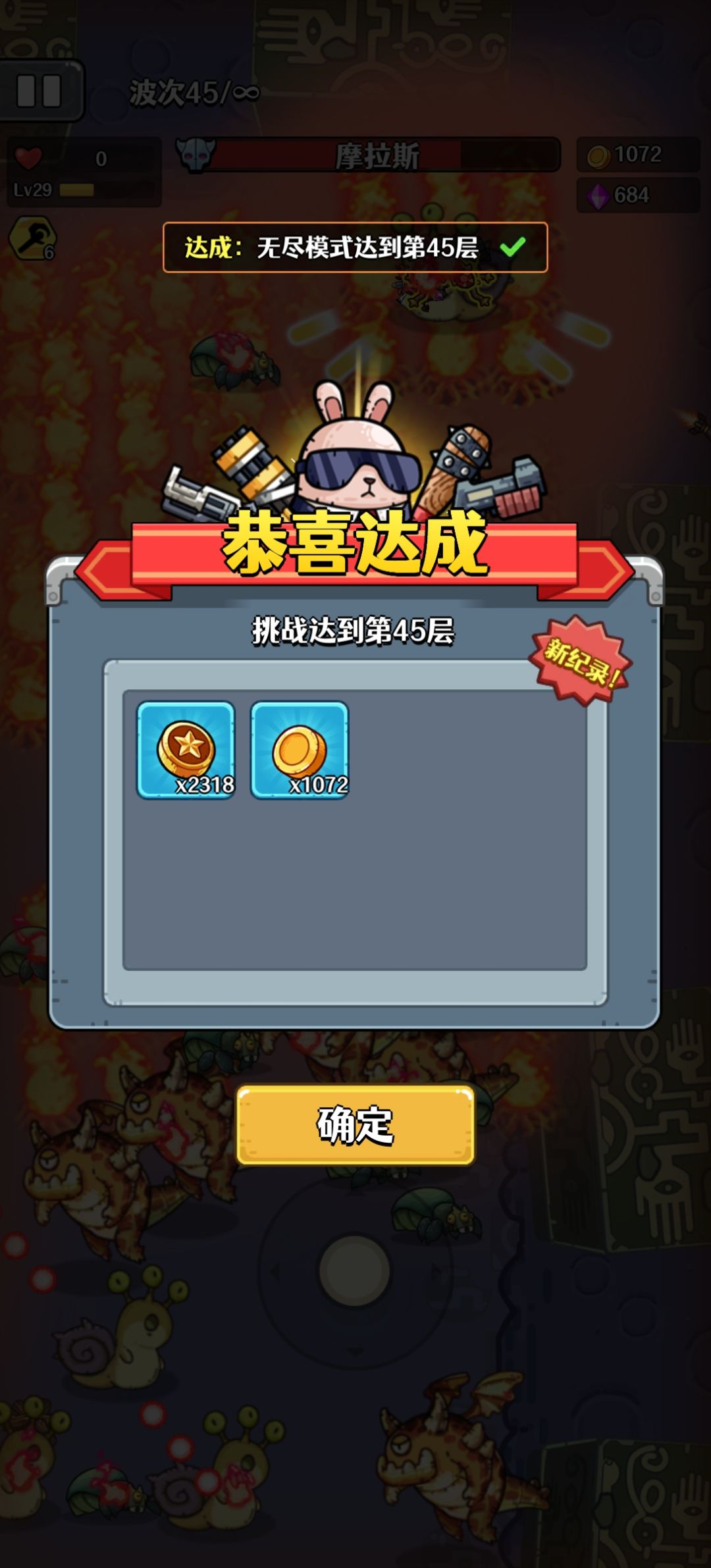 测试服入坑,当时雷元盾可以增加免伤次数,所以最高65层。目前正式8服零氪第9天,最高纪录35层。挺好玩,很适合蹲坑打发时间[表情_酷]。 无尽模式想走的更远,下面5个方面很关键: 1.尽早拿到契约宝箱和两枚结晶戒指,因为这是资源和伤害的主要来源; 2.拿到更多的磁能护盾和狩猎勋章,前者增加容错率,后者提高boss斩杀速度; 3.取消战斗特效,选择火属性,拿到烧烧觉醒; 4.因为零氪的缘故,目前我选