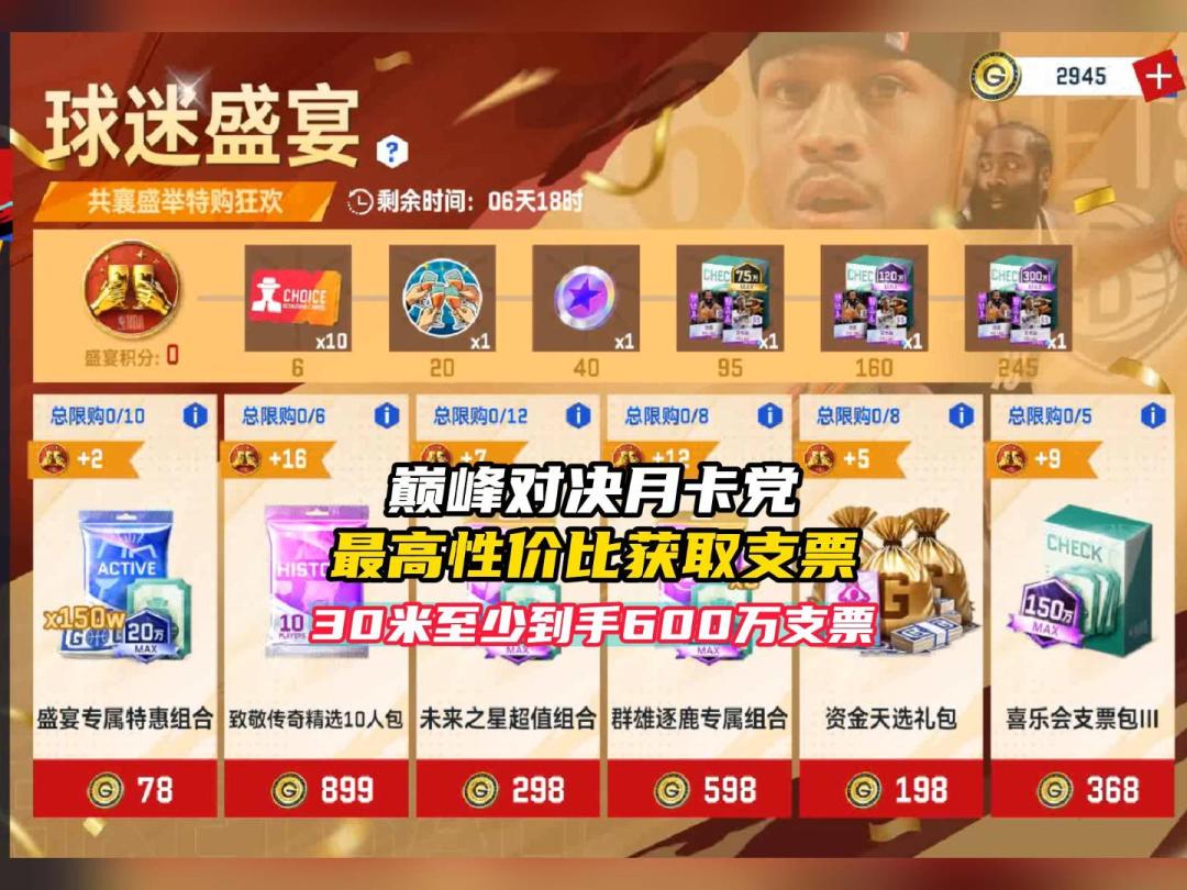 NBA巅峰对决月卡党最高性价比获取支票活动来啦!