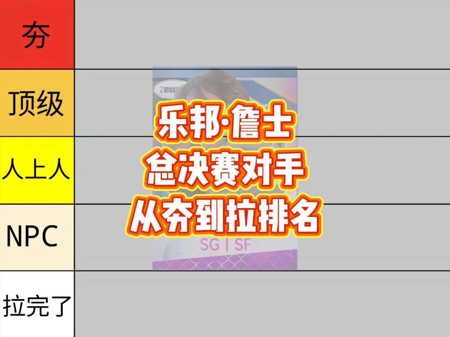 乐邦詹士,总决赛对手,从夯到拉排名