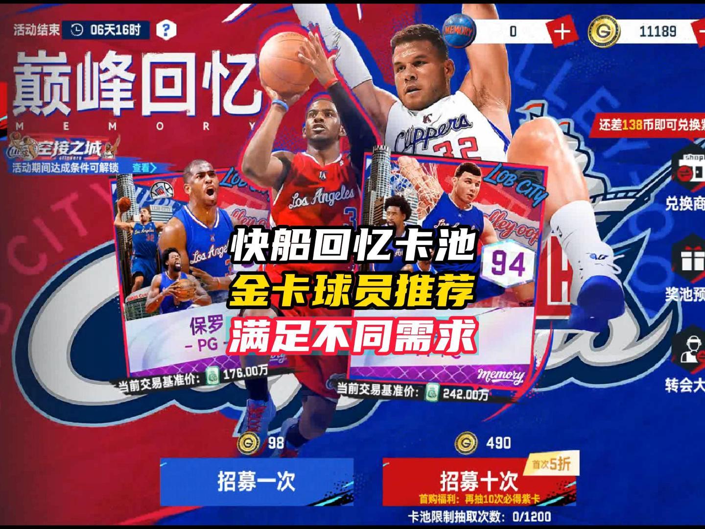 NBA巅峰对决快船回忆卡池金卡球员推荐!