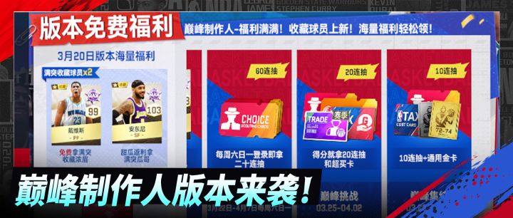 🔥「巅峰制作人」版本上线!🔥200+精选现役球探卡上线即领!全新收藏金卡、返场收藏金卡完成活动任务免费领!更有专属收藏卡面和收藏头像等你兑换!#美职篮巅峰对决#nba巅峰对决