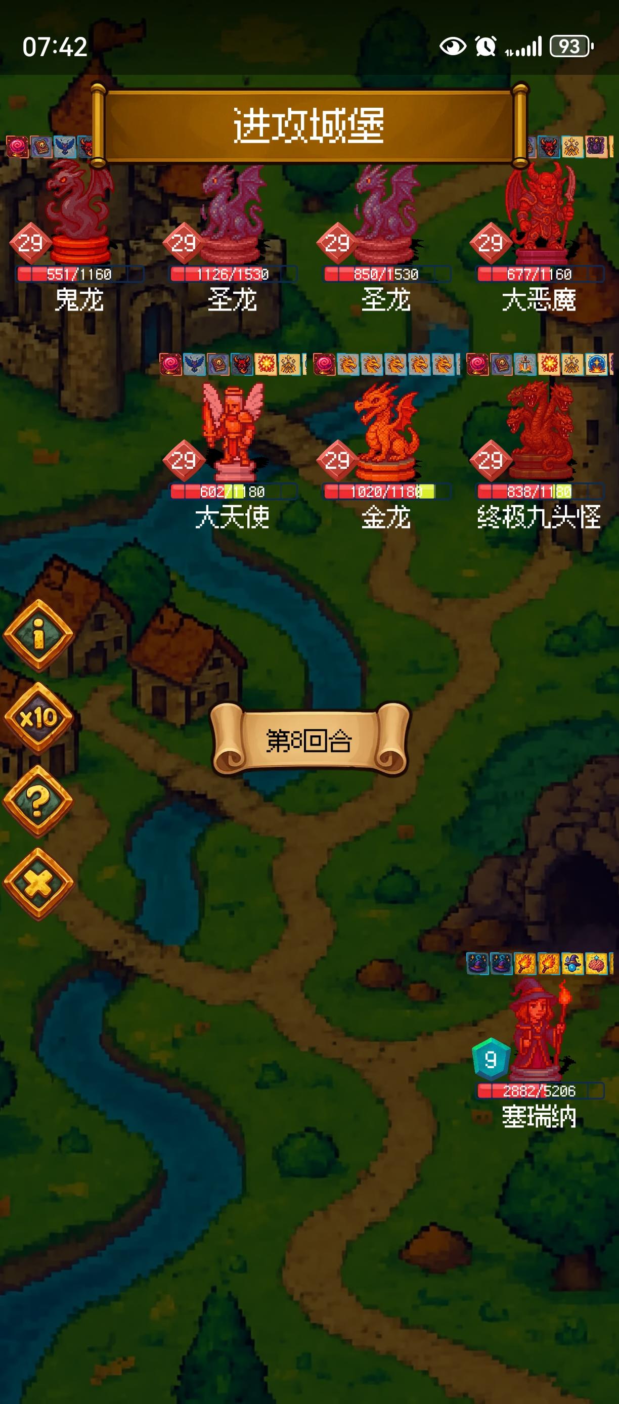 主城据点副城壁垒,狂堆攻击,后期280攻击150多防御,2400多血,真刺激。从第二年就一直只上英雄,一路砍到999天,刺激!