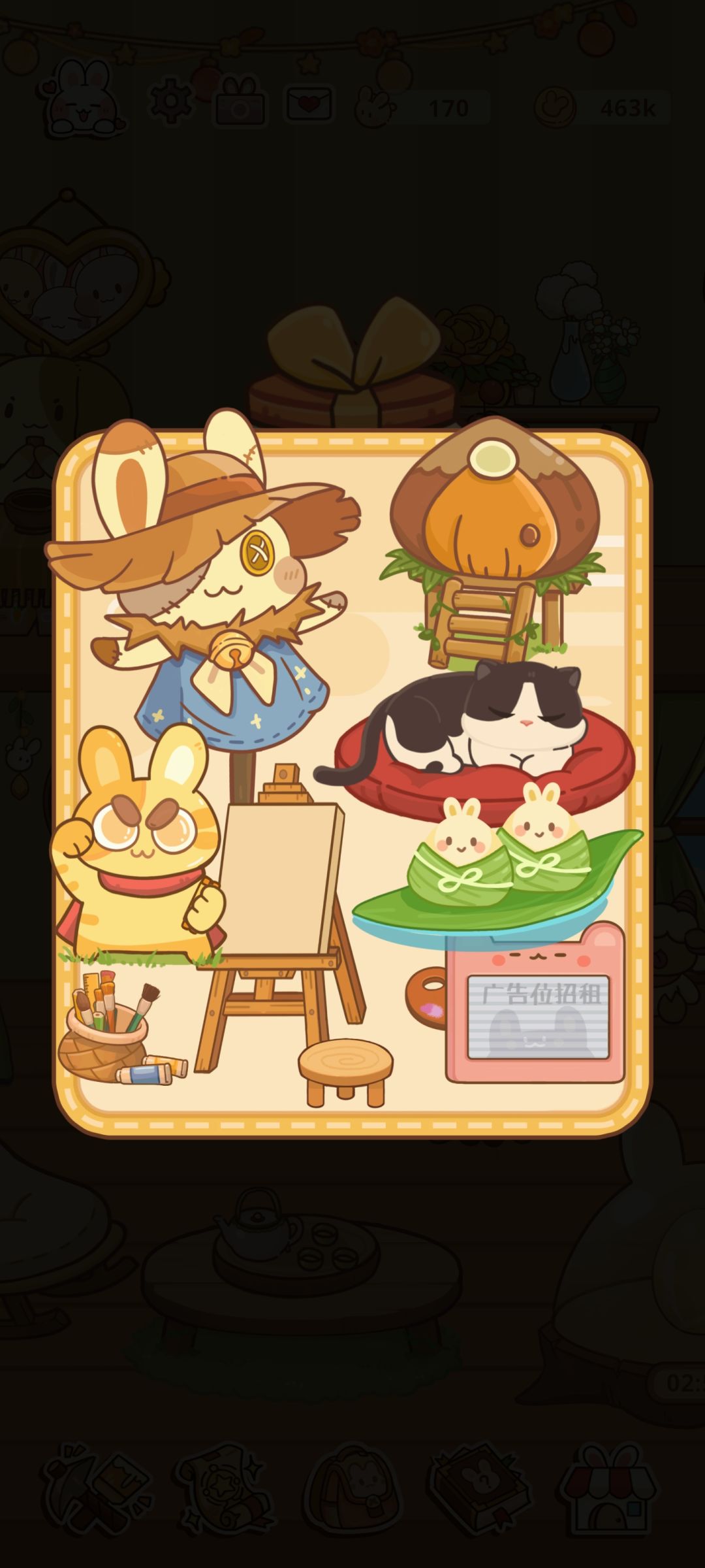 rt,只有扭蛋机的抽齐了,商店的家具缺很多很多,把有的展示一下。家具有一部分是动态的,但我只能截静态的图,会稍微描述一下 ------ 先把扭蛋的更完了,商店的晚一点再开始写 ----- 图片太多了,商店的单独写一篇 (1)扭蛋机(全部为动态) ①兔牌电视机,点一下黑屏 ②魔法画板,点一下画画 ③稻草人,点一下弹起来挥手打招呼 ④栗子屋,点一下一个小板栗探头打招呼 ⑤招财兔兔,有好几个形态,恭喜发