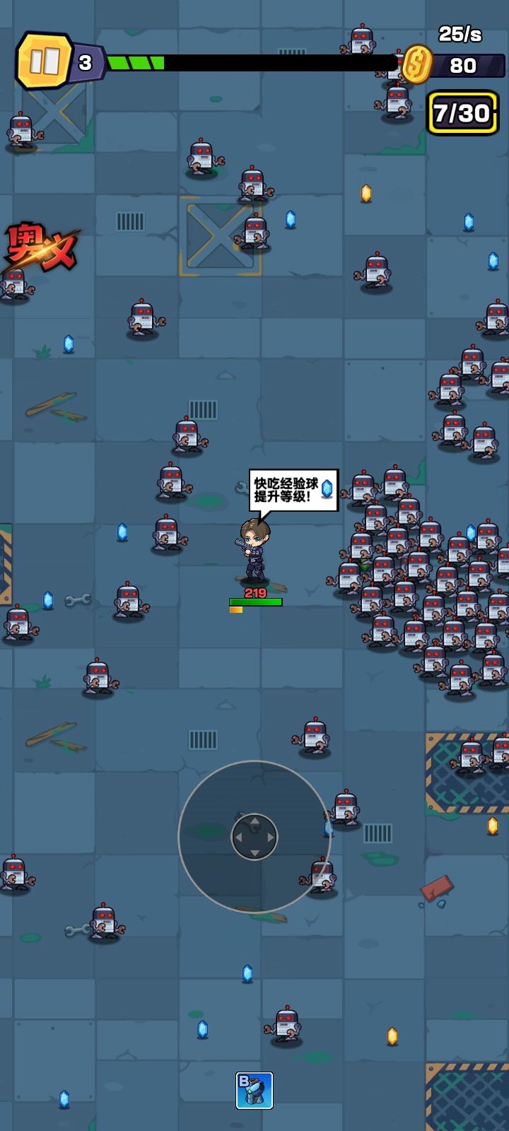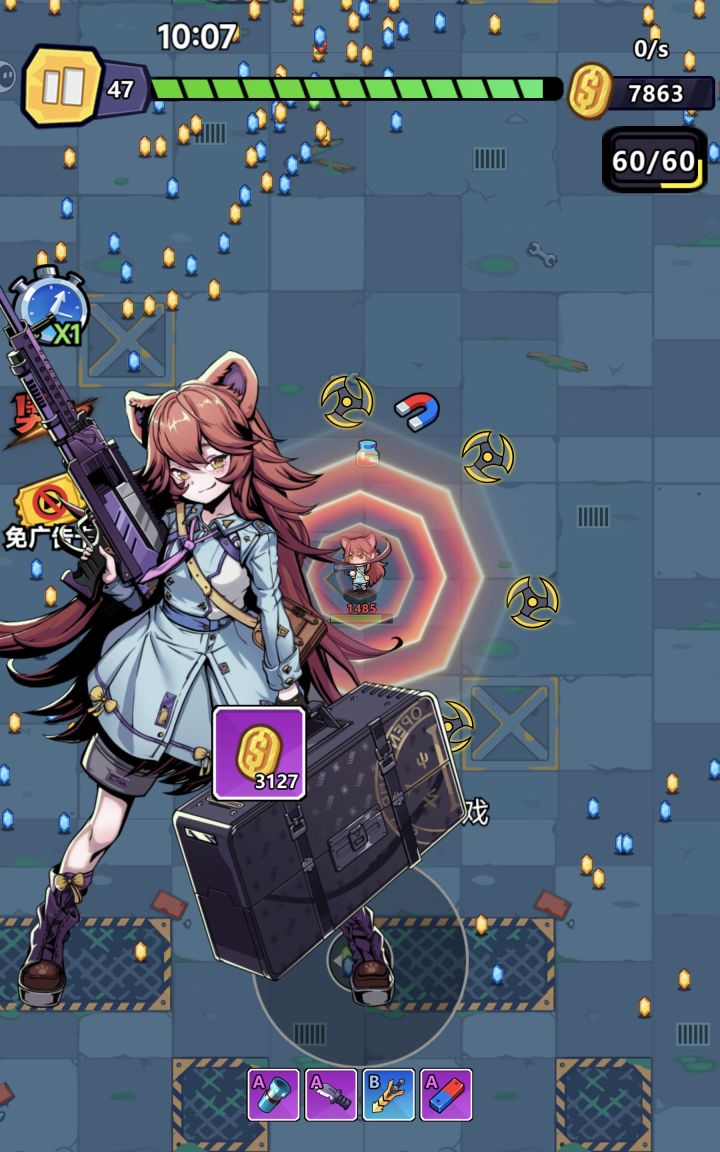 建议:开局先领一堆福利码,能前期轻松。玩一段时间能有个不错的数据,不停的躲躲躲。如果想快速提升还是氪个成长基金和月卡比较nice~
