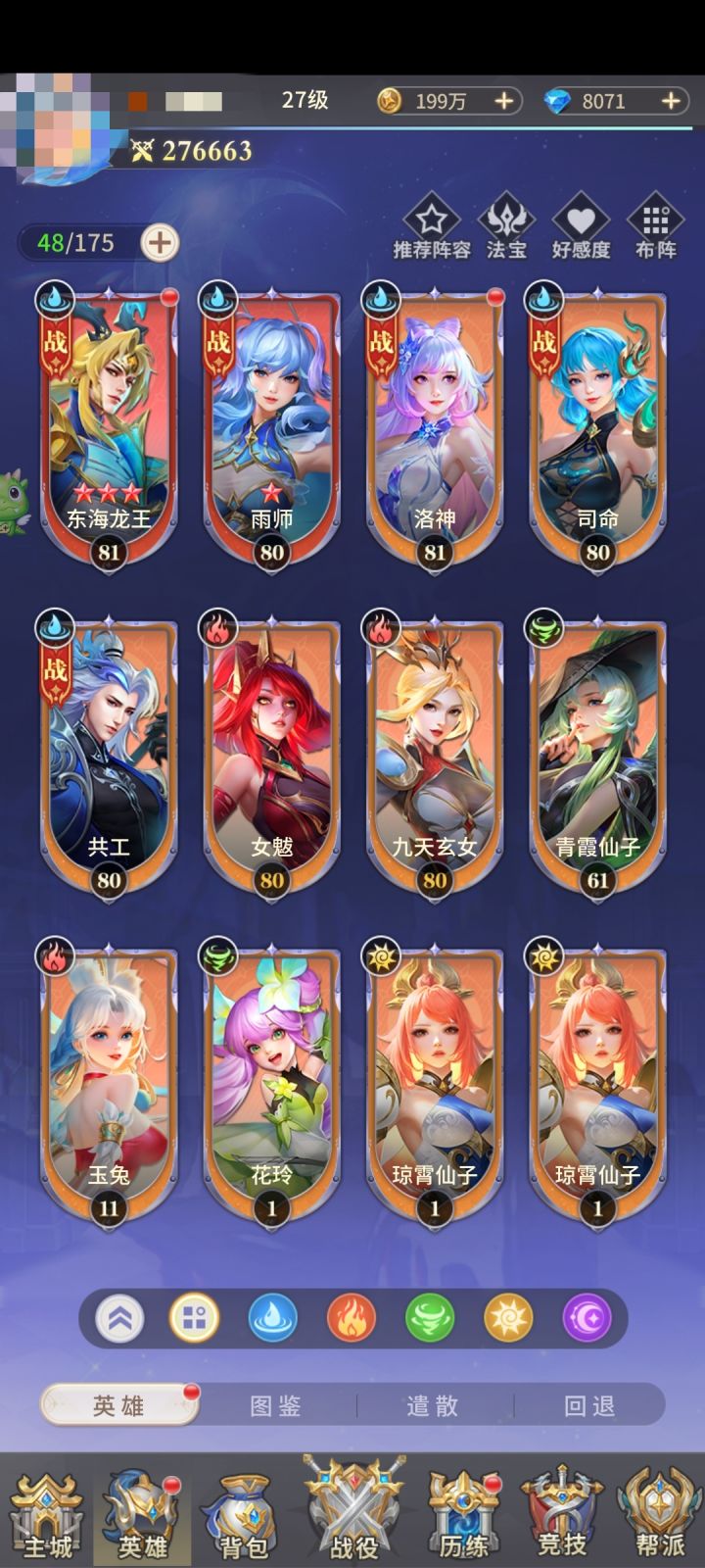 风系有用卡多养,前期刷金三风后,稳过15天活动,堆攻击,半神前一直好用的法爆队,紫霞,岩罗,女娲,嫦娥,狗粮不够,嫦娥换紧那罗,一前排,后土,光头,没有就风后先顶着火系杨戬脆皮最废的核心,养他或许精卫,打阵营塔,或者放弃,,毕方还行,战士队可以用,水系,妲己输出超好配龙王,打boos,森林,棋局都好用,就是打不过紫霞岩罗法爆队,小龙女,可以助战,光暗,低克优先换女娲,,最好用的光暗,后土,铁扇
