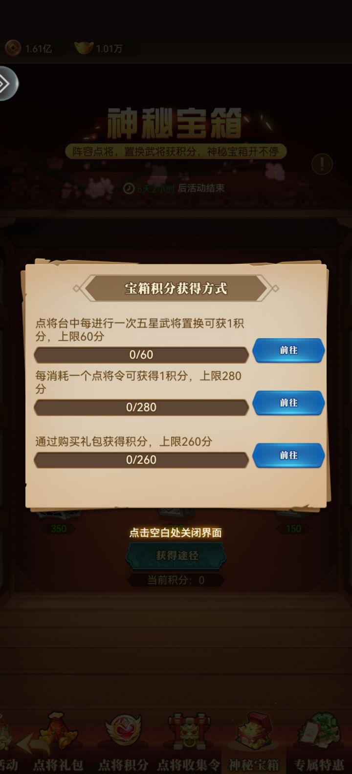 1.玩战士,玩战士,玩战士!重要的事情说3遍!2.战士优先徐晃孙策,有哪个玩哪个!3.所有资源,集中供给一个将,不要分散,除非第一个满了,10个12星干不过一个14星+九个凑缘5星!4.运气很重要,同样的氪度,欧皇领先非酋一千里!5.肝好的一定要19+1,1个主号+19个小号,每周多几万元宝,肝就对了!6.一定要进官方群,里面妹子多,个个都是人才,说话又好听!7.我是来完成任务拿礼包的
