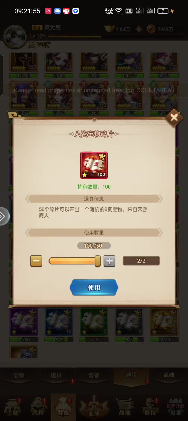 神秘商店换的宝物碎片无法使用