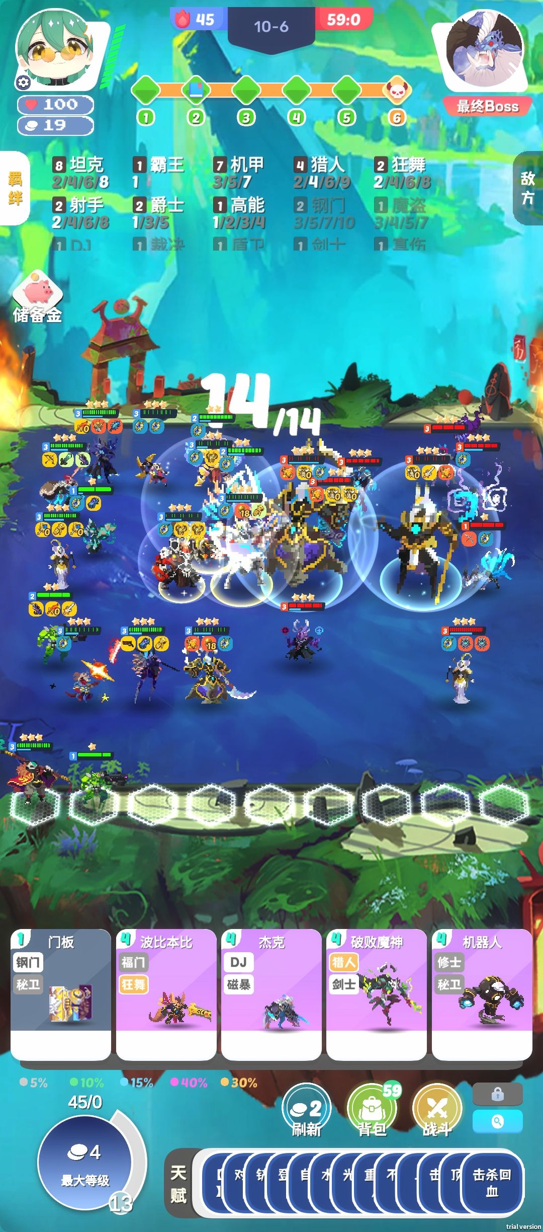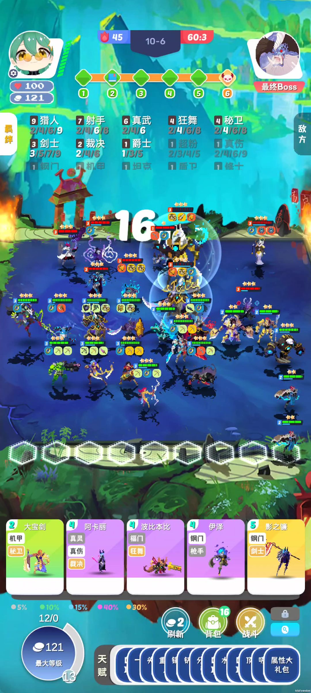 单机通关 机甲真的无脑过,全程不输。飞升后期都没怎么触发过,不然血量更高。高攻是因为有个根据血量加双强的天赋 1建议带个铲子,7机甲必备的,要弓合成专职。后期就往坦克,猎人方面靠拢。 2前期上个虫子,有机甲就拿,坦克可以留着,前期羁绊就机甲坦克就行,至尊机甲给出虫子。 3天赋,最好是选装备重随,专职最好就是坦克,机甲,猎人。有免控也拿点,有锤石带冰甲的阶段,战力不够没免控会被一直控。 腕豪就带猎人