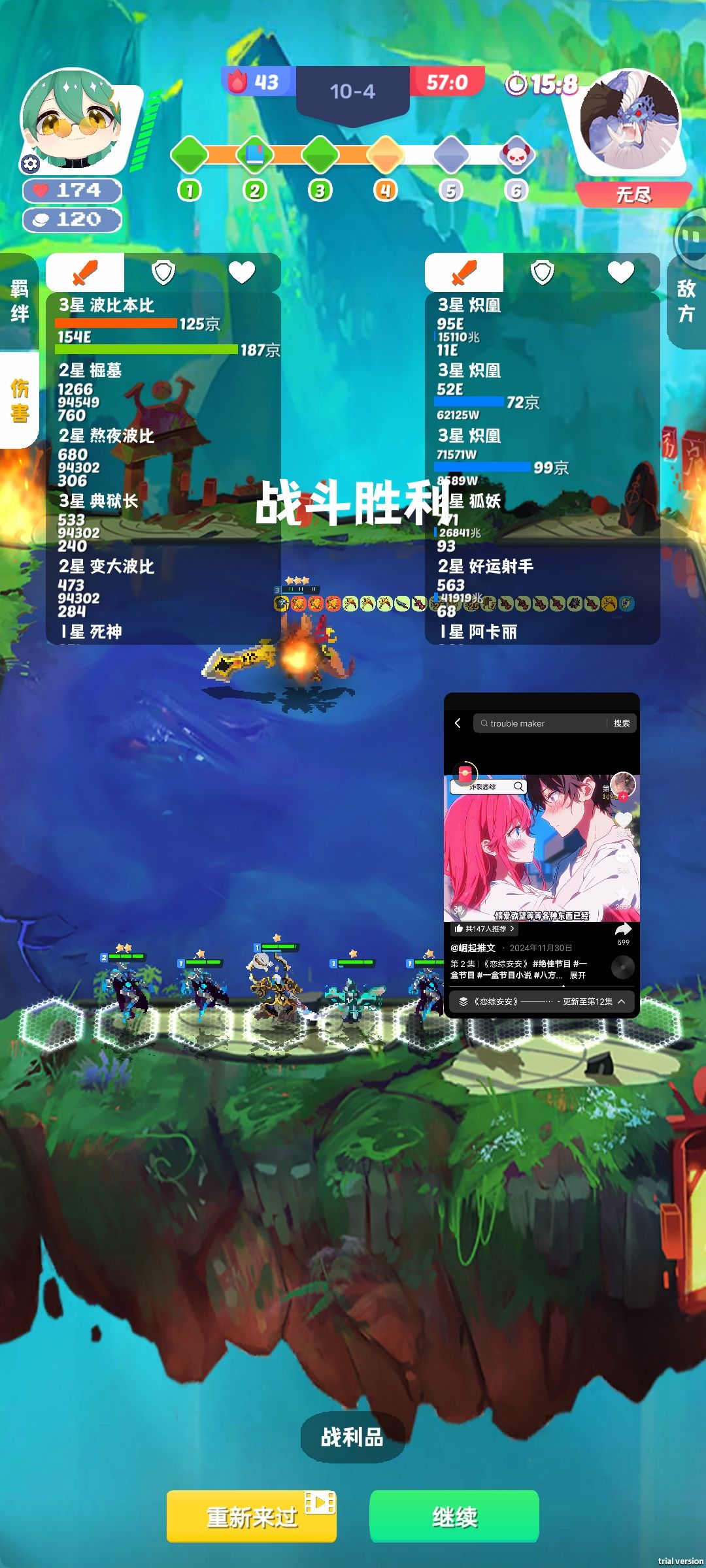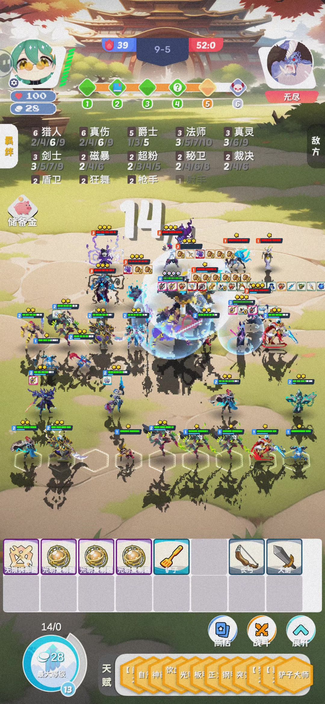 真神波比,这局最高养到200多亿的血。一回合打完差不多2w兆的伤害。 装备禁忌加2个饮血剑(必备饮血剑强化),然后让扭曲力场给波比4个转,分别为:坦克、机甲、真武、盾卫。最后再补齐真灵全队加血。 开局先拿装备重随,然后找饮血剑强化。先凑7福拿铲子,然后凑十刚(福刚越早越好),顺利的话7福十刚5阶段就位。随后先凑3机甲2真武给波比,然后就补齐机甲、真武、坦克、盾卫给波比。最后开9真灵给全队加血。