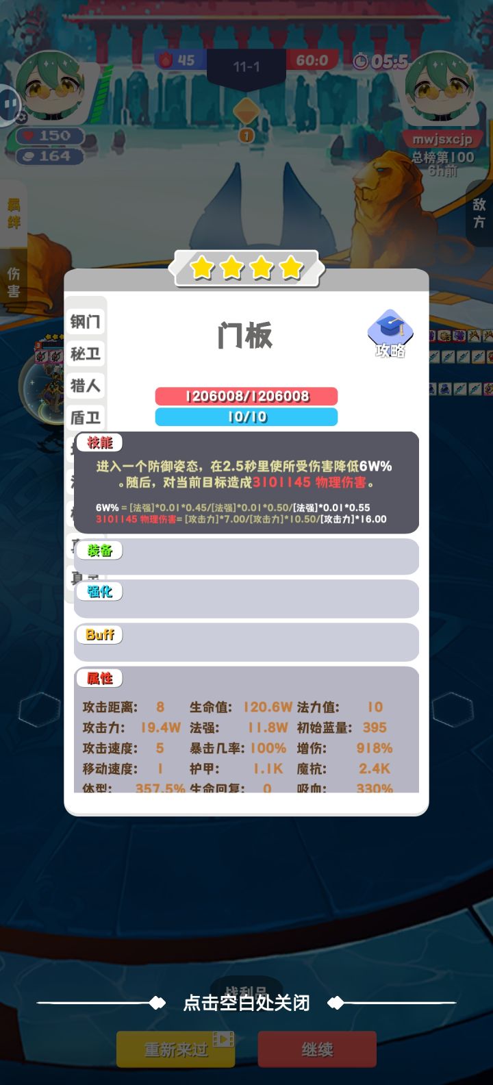 一、准备工作:1、每日签到,获取免广告1小时,便于刷新海克斯(选择奖励)。2、进场buff,我选的吸血剑(强化),效果:溢出吸血转为护盾)3、1-2小时时间。4、模式:单人无限装备爬塔二、原理:吸血剑(强化)、法师、真伤、盾卫获取海量护盾,通过神器“禁忌”将护盾转为最大生命值,再通过海克斯“重量级人物”(血量越高,攻击越高)指数级叠出攻击;重复前述循环。注意事项:不获取回声,分裂弓等发