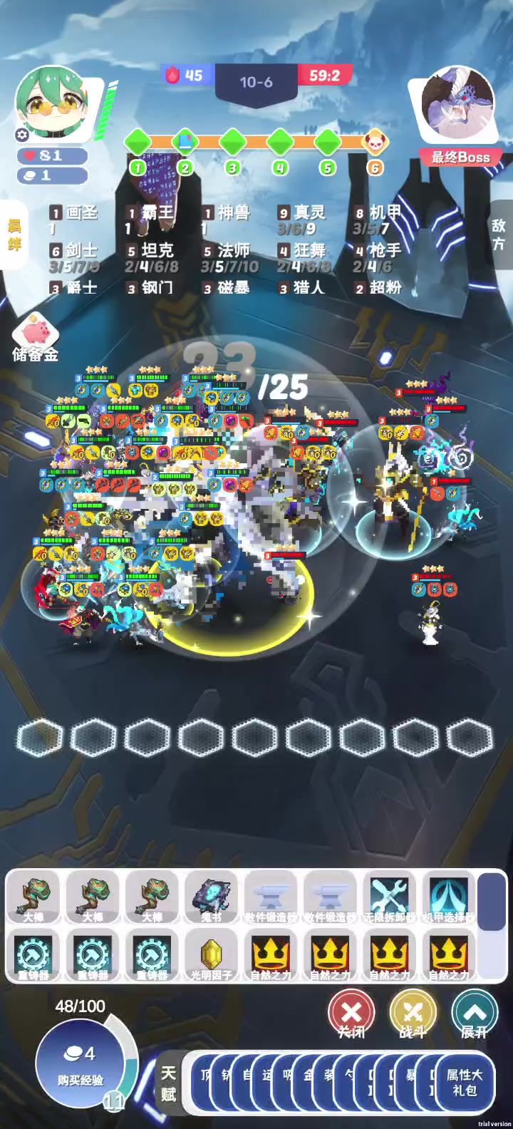 自从有了机甲,单机模式就简简单单,如果不是不够格子,很可能能凑个全羁绊成就,装备都懒得调了,随便搞[表情_斜眼笑]虫子要退役了。