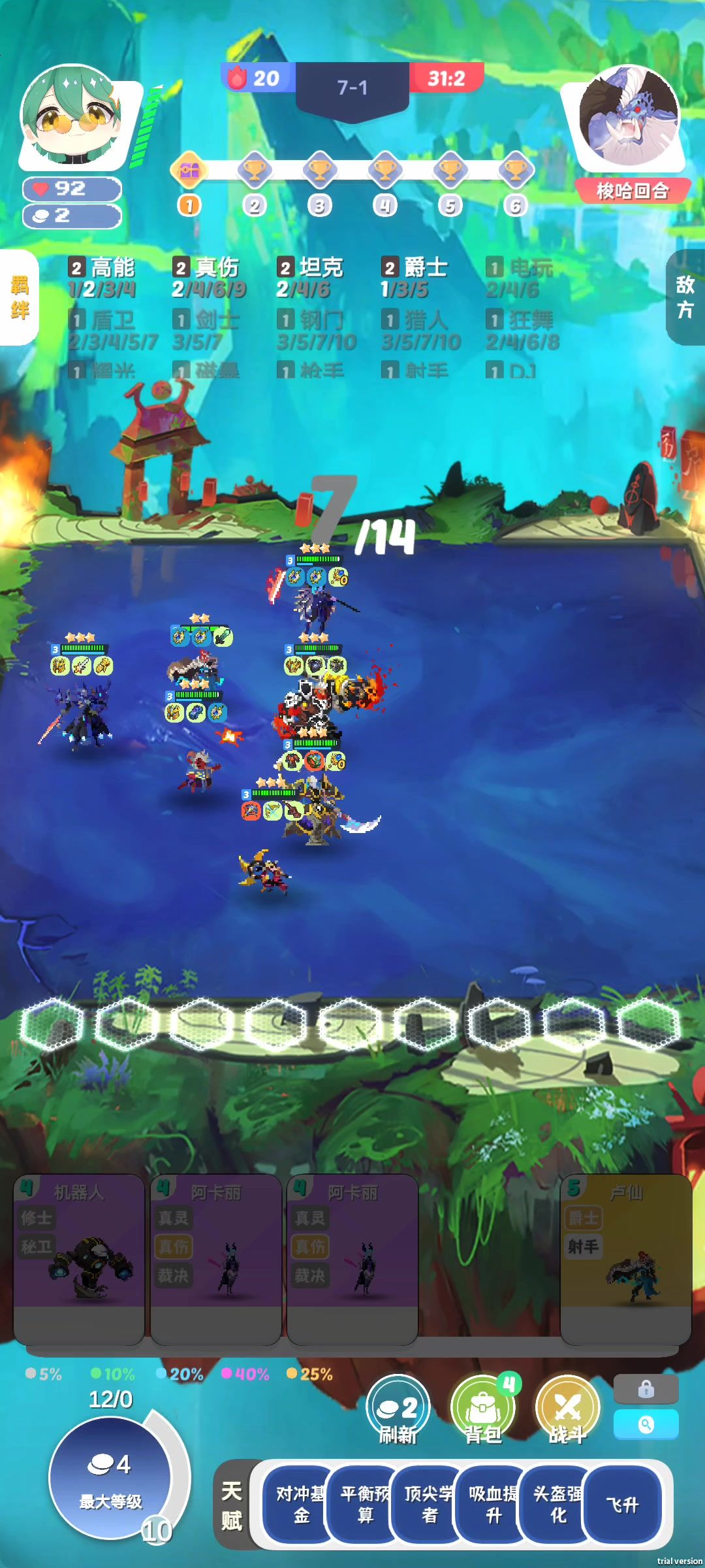 说一下思路,想要追三星五费,开局真武或者电玩起手。前期凑成二真武二电玩,合成大天使和肉装给斯巴达,这货前期贼能抗伤害还高,中期四真武四电玩,优先四电玩,四真武最后建议保留,保证强度,中间适当刷新一下商店,保证真武羁绊的强度。d到琴女和画圣就上,10级之后真武保留电玩扔掉,画圣和琴女给加法力值的装备,开局直接启动。拿个法师凑成2法师,多余的可合成耀光耀光或者emo徽章。