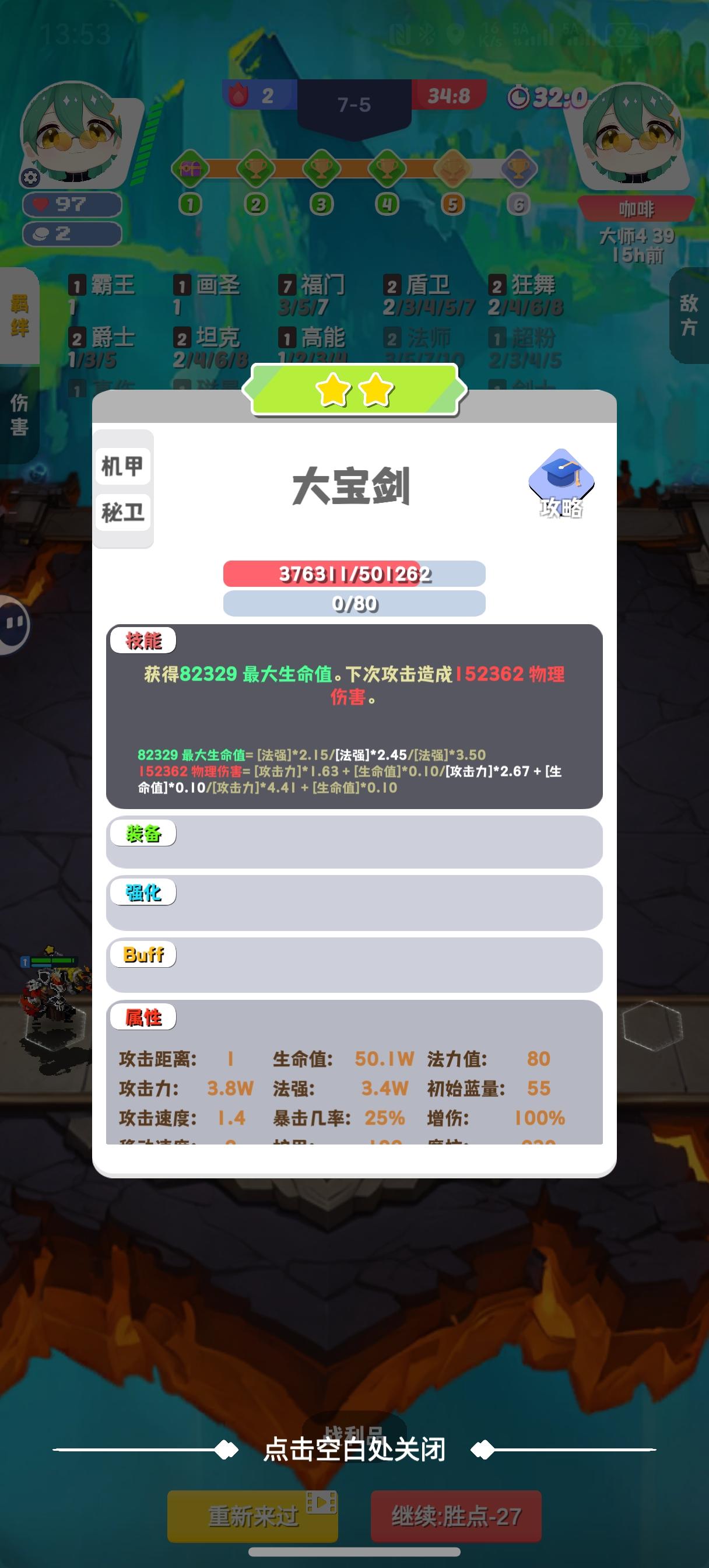 一、准备工作:1、每日签到,获取免广告1小时,便于刷新海克斯(选择奖励)。2、进场buff,我选的吸血剑(强化),效果:溢出吸血转为护盾)3、1-2小时时间。4、模式:单人无限装备爬塔二、原理:吸血剑(强化)、法师、真伤、盾卫获取海量护盾,通过神器“禁忌”将护盾转为最大生命值,再通过海克斯“重量级人物”(血量越高,攻击越高)指数级叠出攻击;重复前述循环。注意事项:不获取回声,分裂弓等发