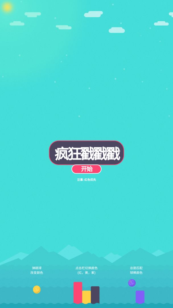 一个休闲益智类的小游戏,东东手指戳中立柱,使其变颜色,对应上球的颜色变化,让小球弹跳的时间越久积分越多