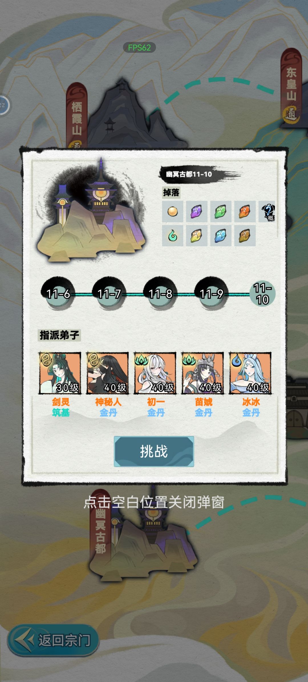 直接看广告,把关卡倍率拉满,之后就是4倍速一动不动刷关,4倍速结束了就去升升宗门大殿和弟子,右手边除了藏经阁和演武场都能第一天升满,左边收收矿就行。 『第一天』 设施:除了演武场和藏经阁,其他都满级了。 角色:慢慢升级慢慢练,挂机打关,动都不带动一下,站撸。其他的就是时间慢慢攒角色了。