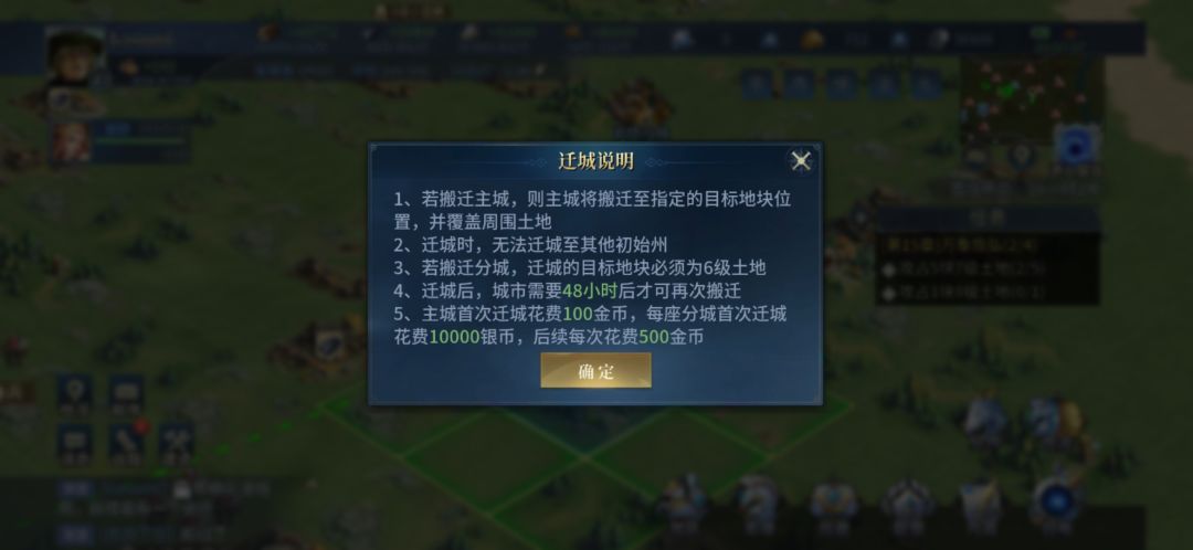 这游戏的功能教学做的不是很好,好多东西都找不到,把这个说明放这省得搞不清楚。。。 迁主城随便一块3*3就行,建&迁分城必须中心是六级地的3*3才能迁。