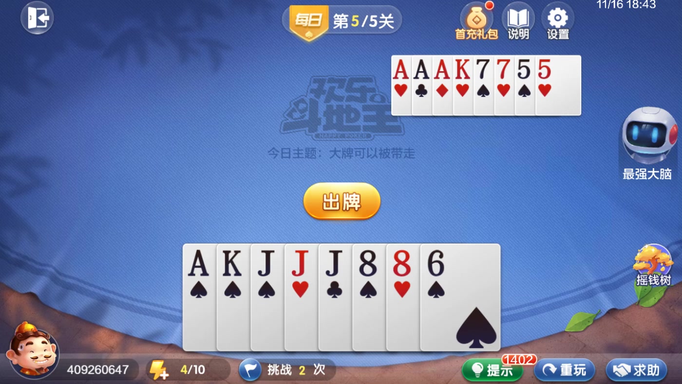 欢乐斗地主 残局 每日挑战 211KQJ777333&D2KJS88555