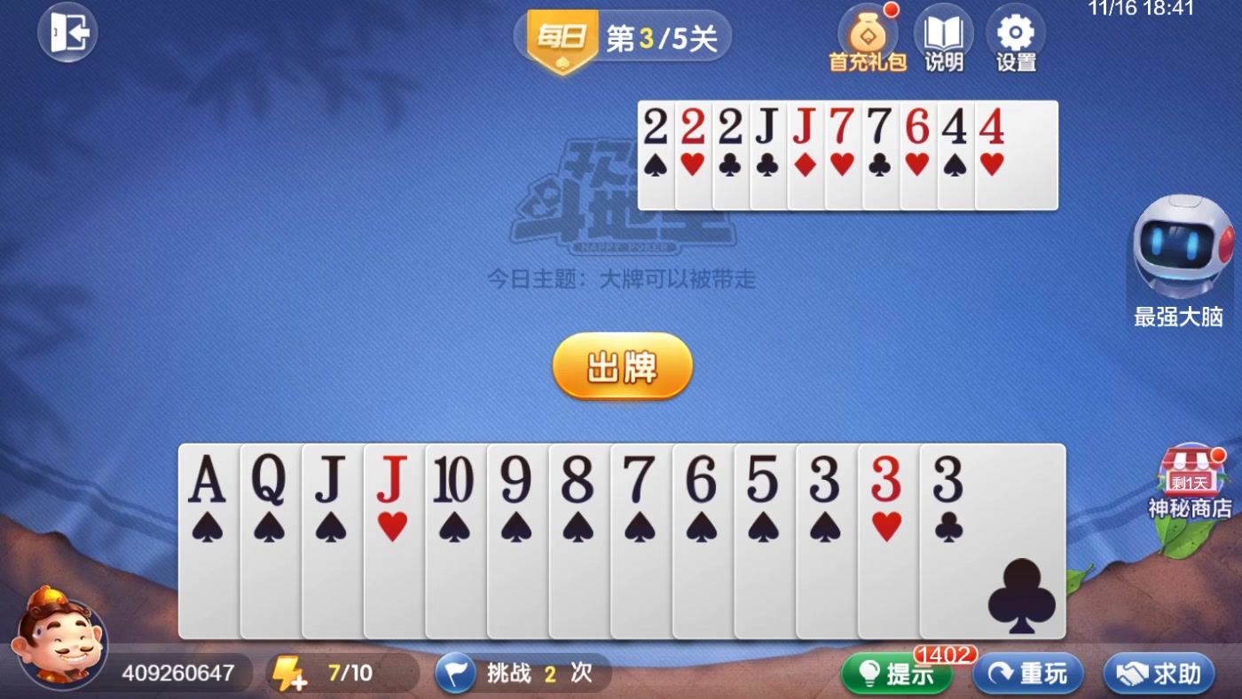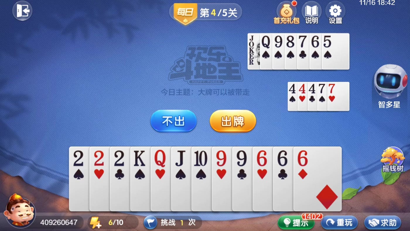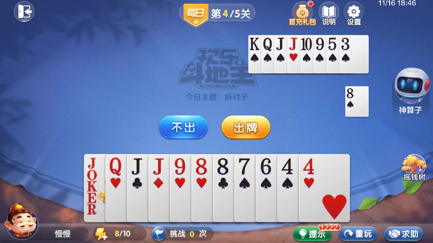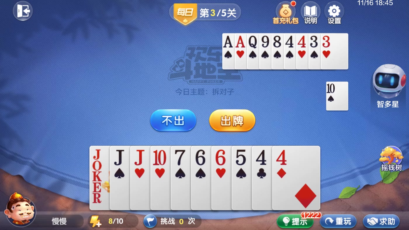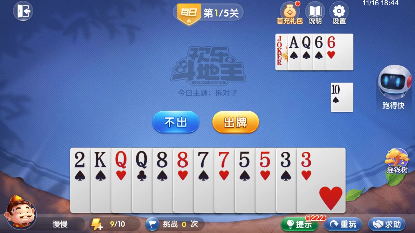 欢乐斗地主 残局 每日挑战 1QJJS98765333&222JJ77644