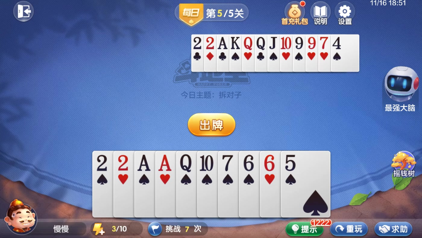 欢乐斗地主 残局 每日挑战 2211QS7665&221KQQJS9974