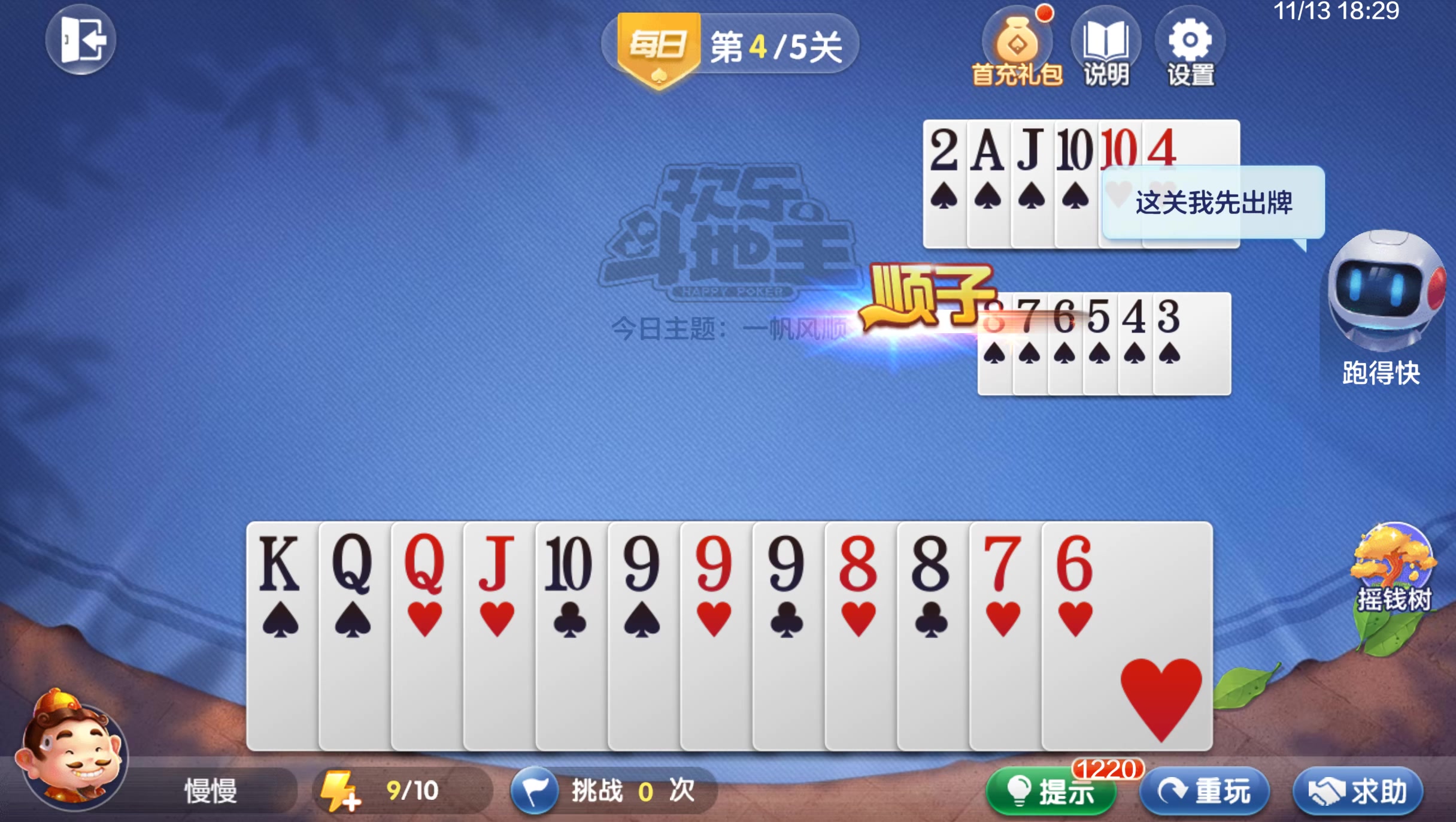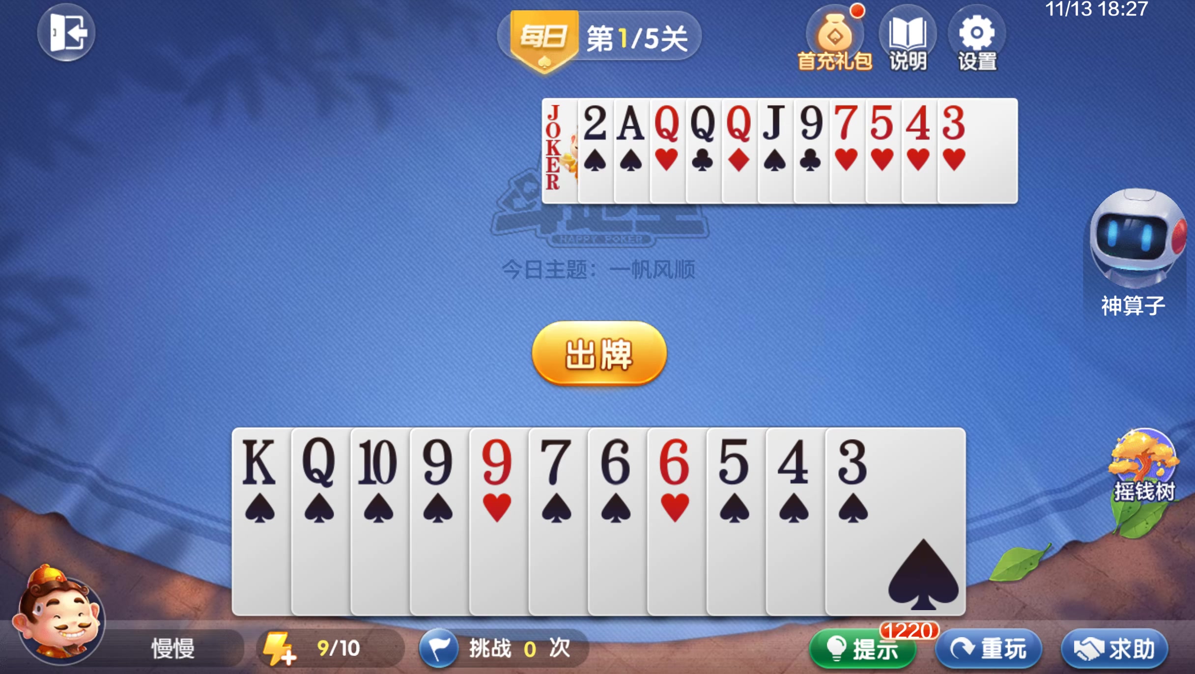 欢乐斗地主 残局 每日挑战 KQQJS9998876&21JSS8765443