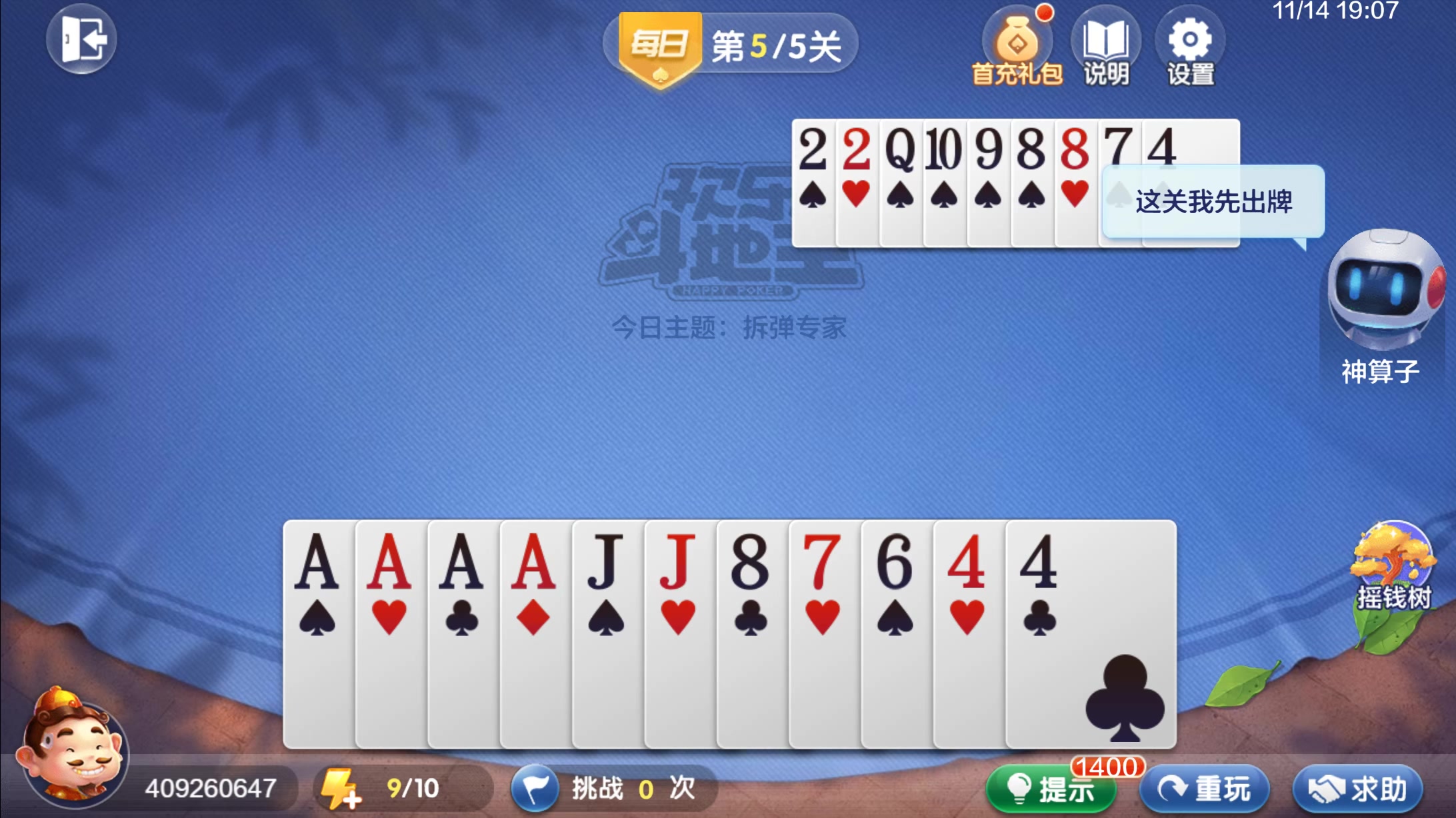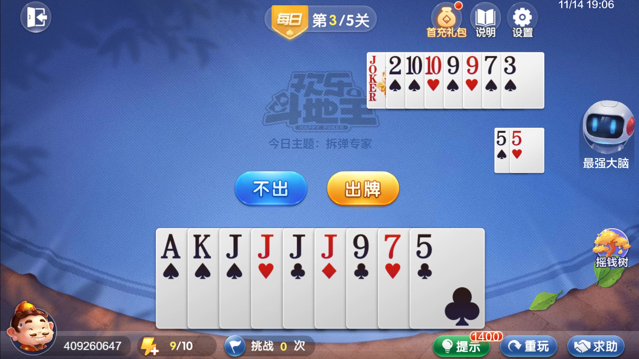 欢乐斗地主 残局 每日挑战 1111JJ87644&22QS98874