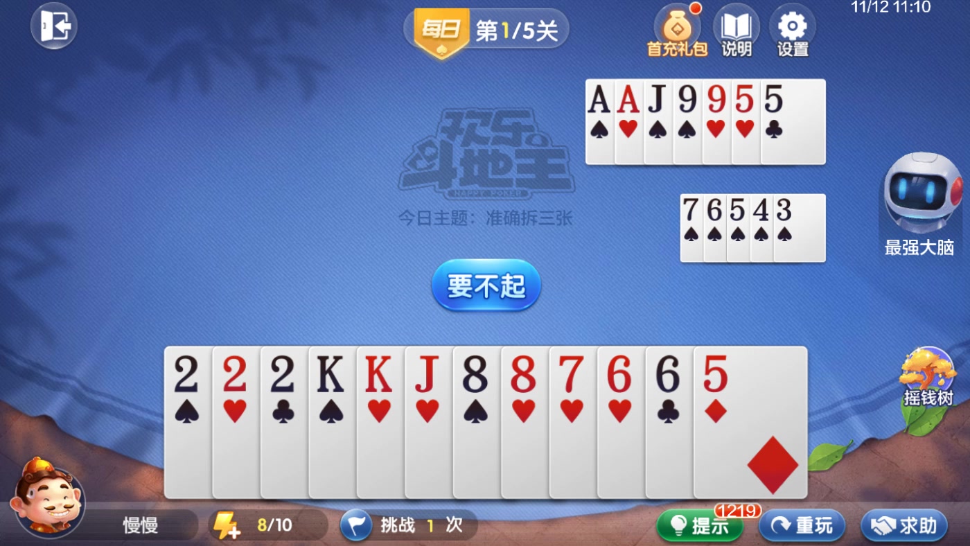 欢乐斗地主 残局 每日挑战 222KKJ887665&11J997655543
