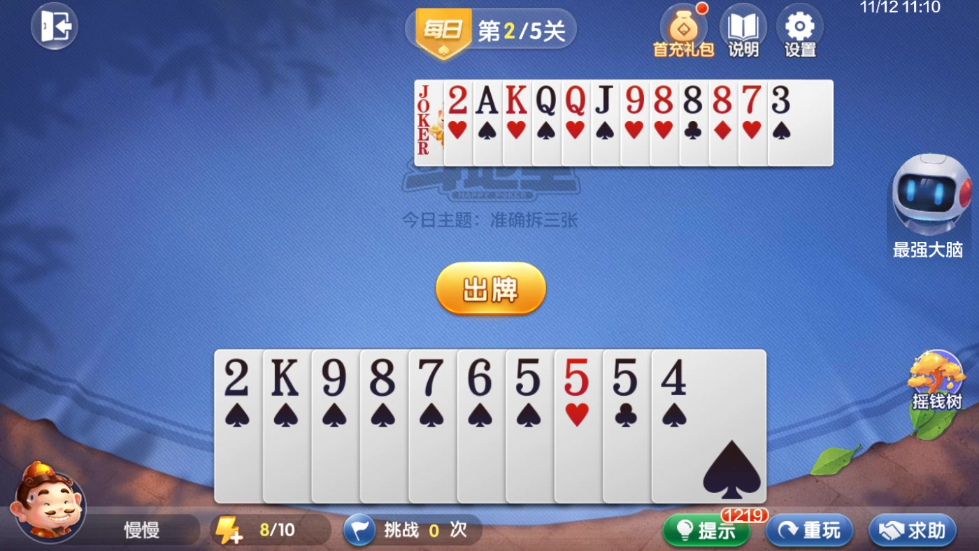 欢乐斗地主 残局 每日挑战 2K98765554&D21KQQJ988873