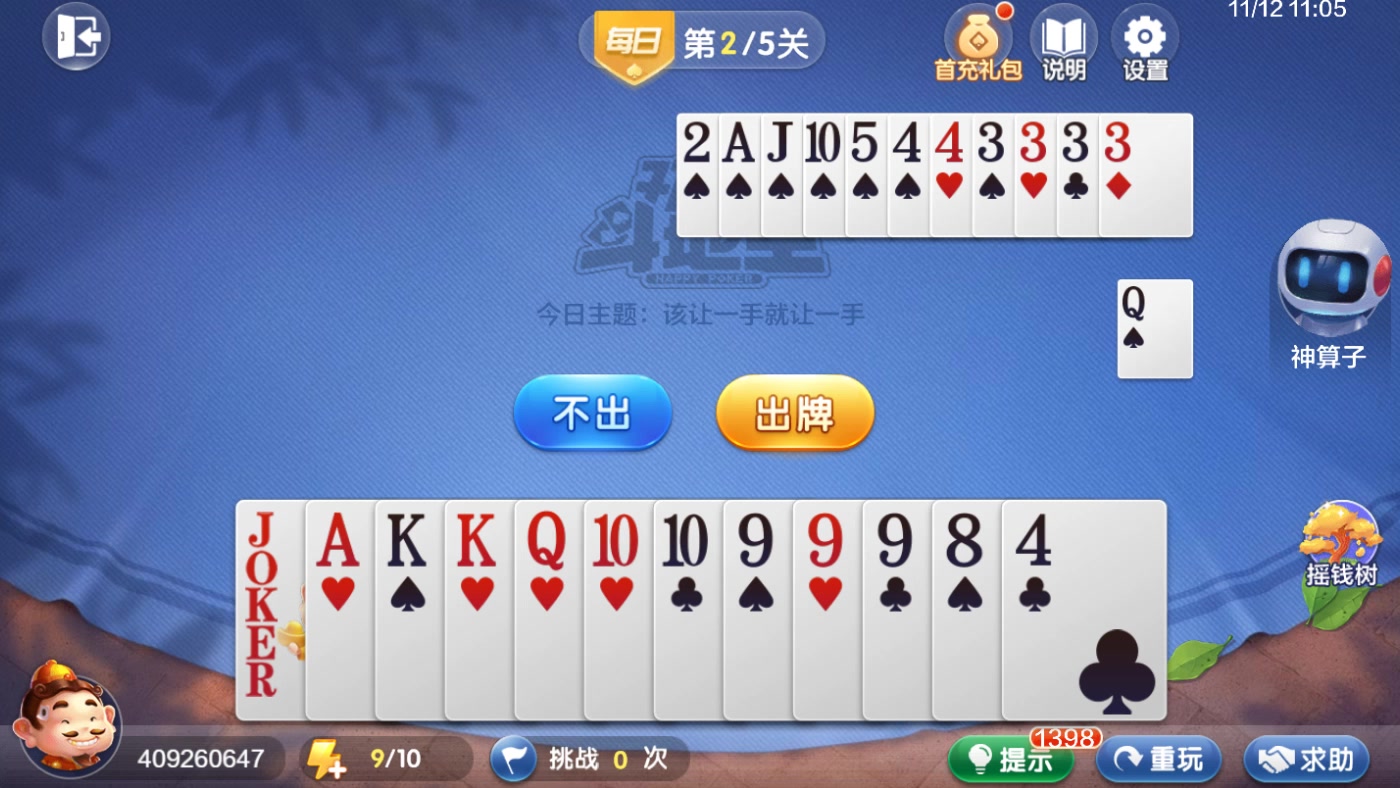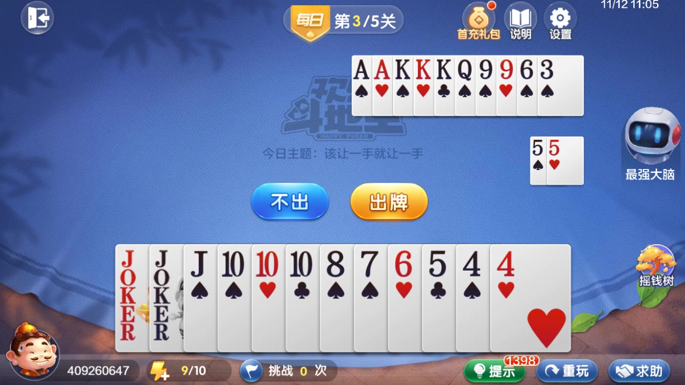 欢乐斗地主 残局 每日挑战 D1KKQSS99984&21QJS5443333
