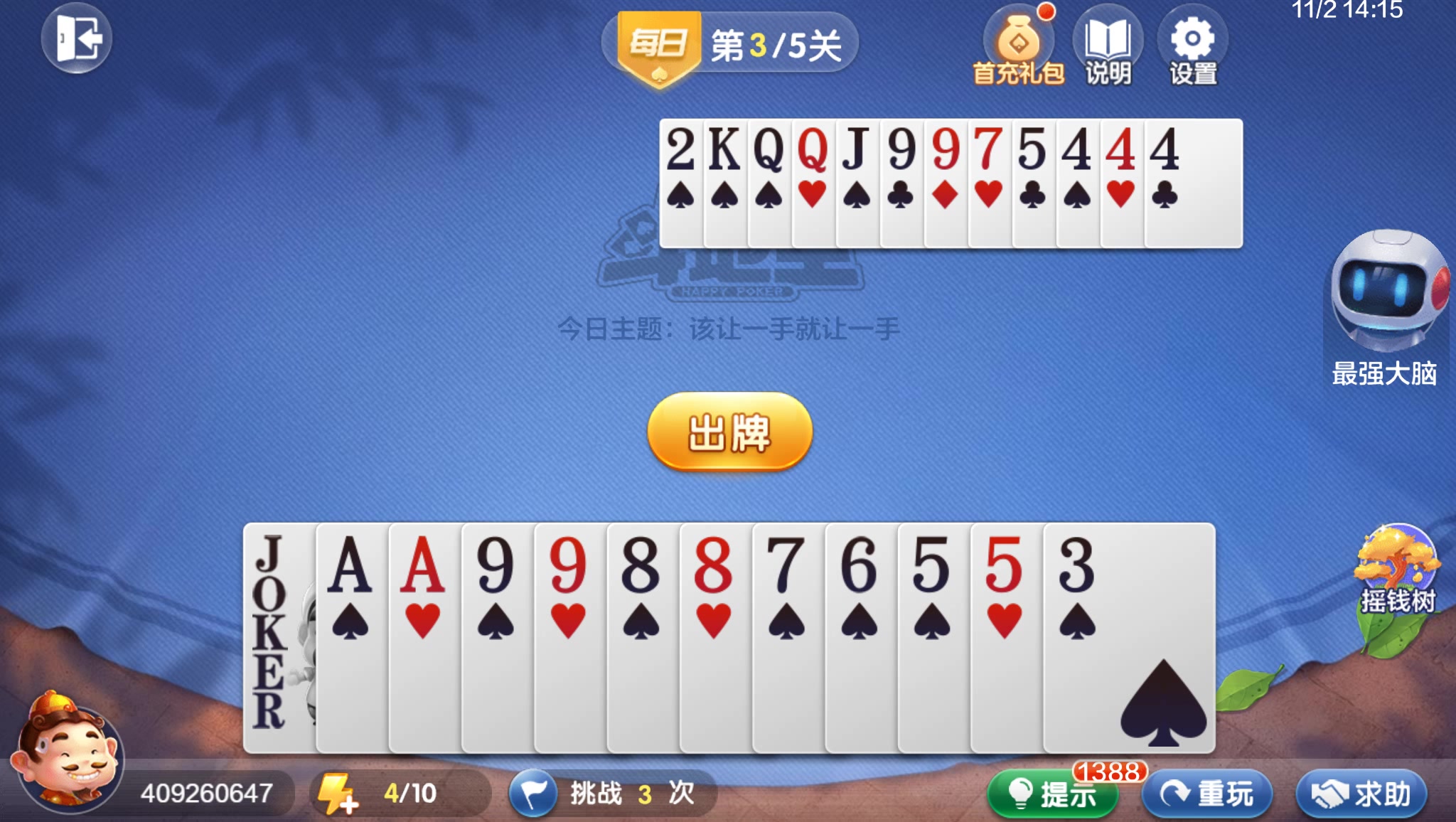 欢乐斗地主 残局 每日挑战 X22J887633&D11JJS64